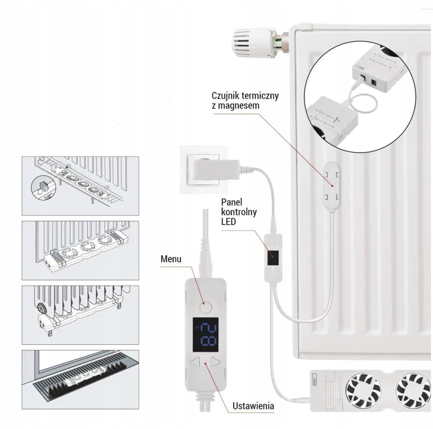 ✴️Это характеризуется очень тихой работой b>(ниже 20 дБ), энергоэффективностью и точным датчиком температуры, который позволяет легко управлять температурой в помещении. Он прост в использовании благодаря автоматическому включению и выключению, а компактный размер позволяет удобно разместить его на радиаторе.