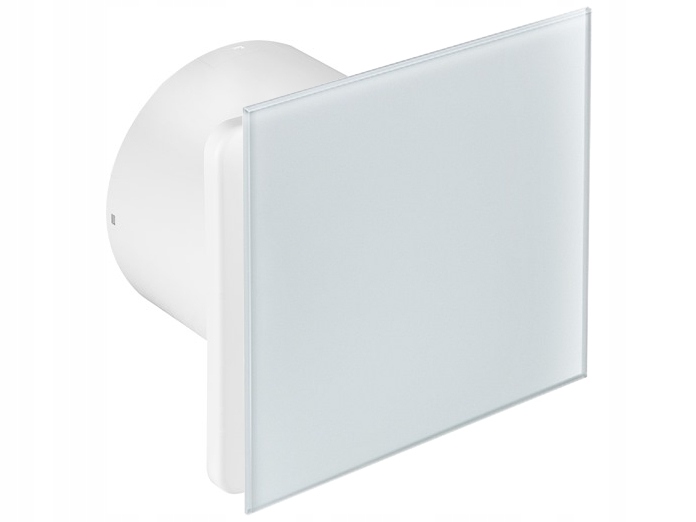Бесшумный вентилятор TRAX 100 WHITE GLASS с таймером, датчиком влажности и обратным клапаном.