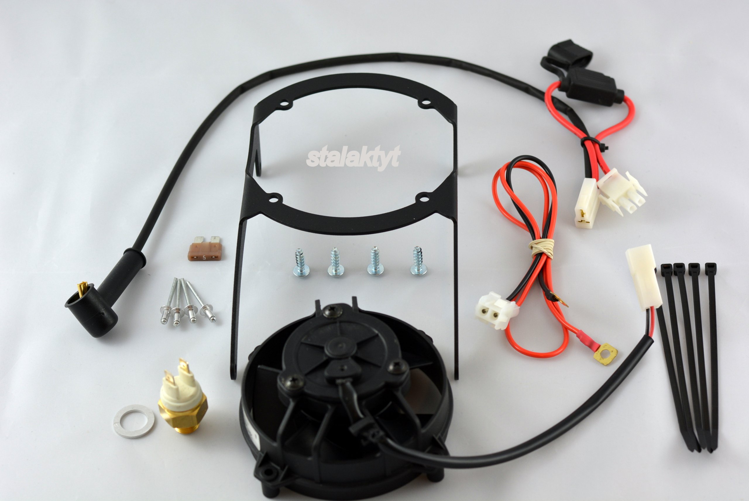 Новый оригинальный вентилятор SPAL устанавливаемый на заводе в мотоциклы семейства КТМ, плюс термодатчик и рамка для радиаторов семейства КТМ (ширина радиатора 115мм)