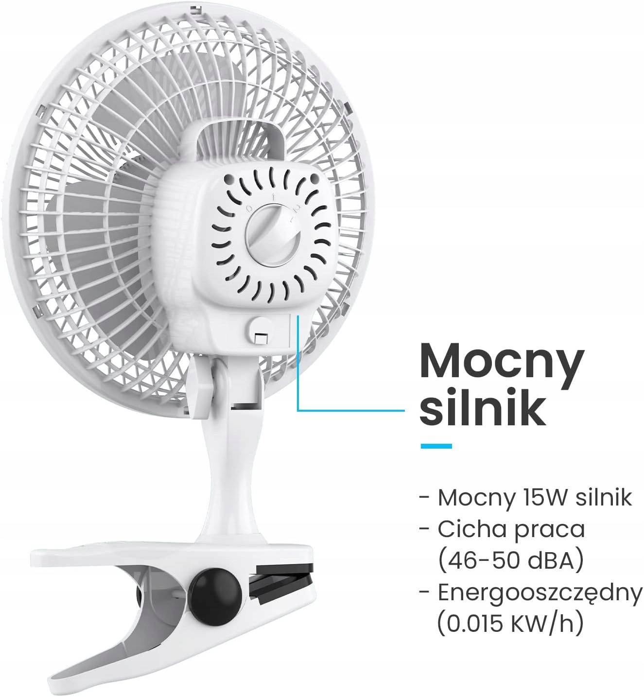 Представляем энергосберегающий вентилятор Pro Breeze с зажимом, диаметром 15 см (5,9 дюйма). Наш мини-вентилятор оснащен чрезвычайно прочным зажимом, с помощью которого его можно прикрепить к любой поверхности толщиной 40 мм.