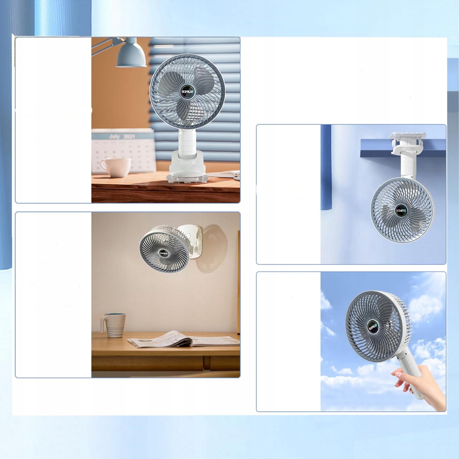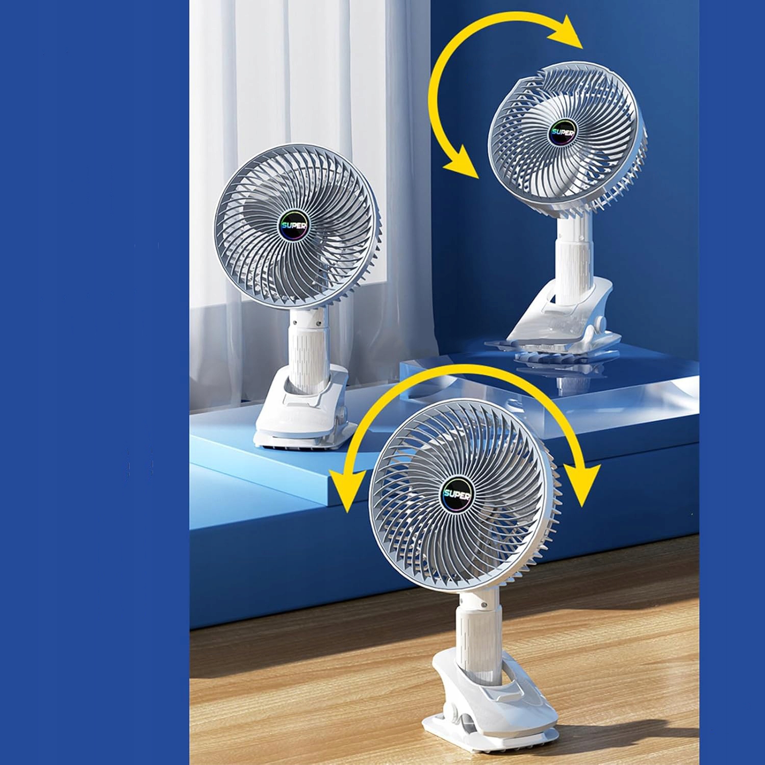 головка вентилятора может быть наклонена и поворачивается вверх и вниз, чтобы направить воздушный поток в выбранное место. Съемная передняя крышка может быть легко удалена, чтобы очистить лезвие вентилятора.