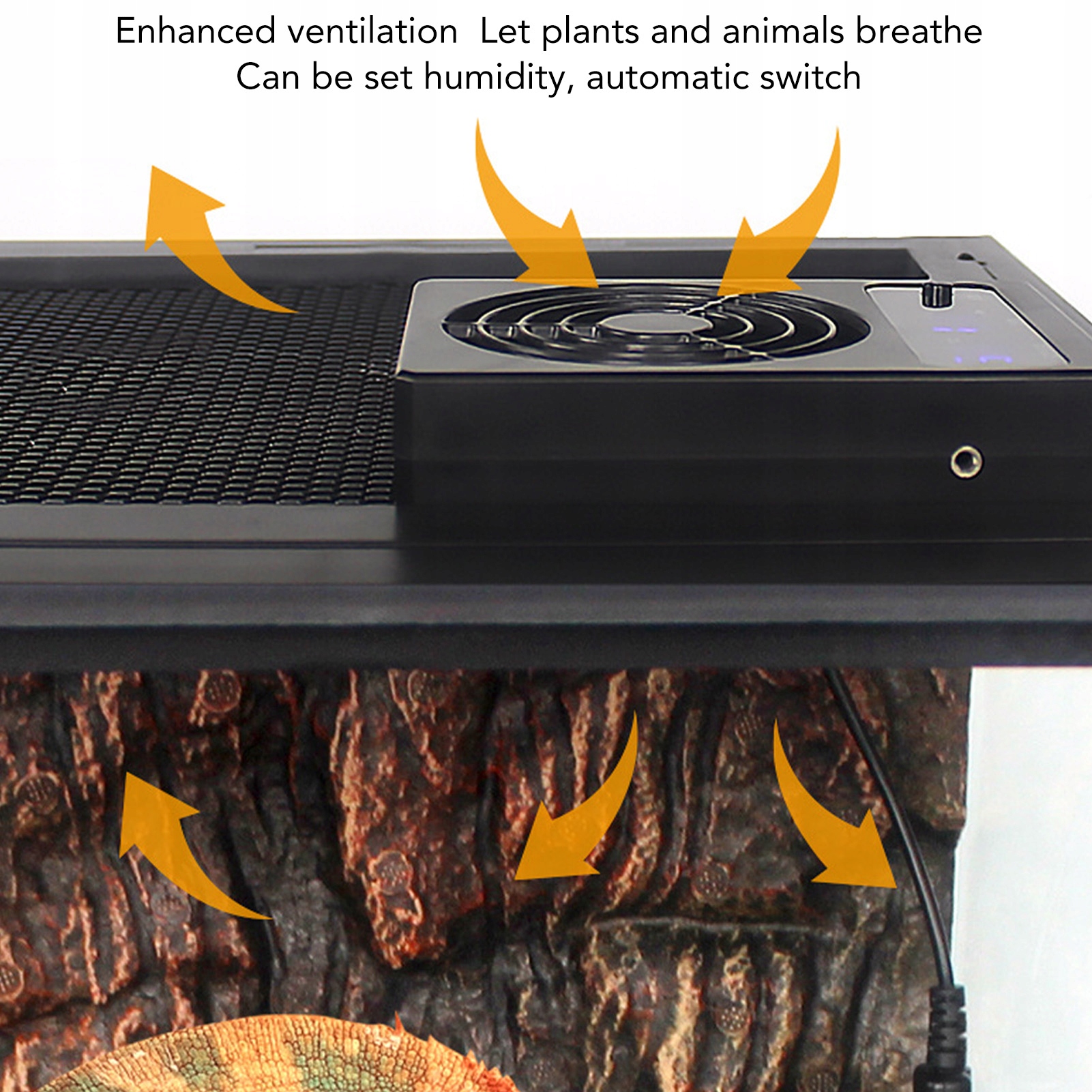 4. Anty -Slip: задний силиконовый нижний колонтитул вентилятора рептилий, без проскальзывания, может быть помещен на резервуар в тропический лес в фиксированном положении, с низким до скользящим, удобным и простым.