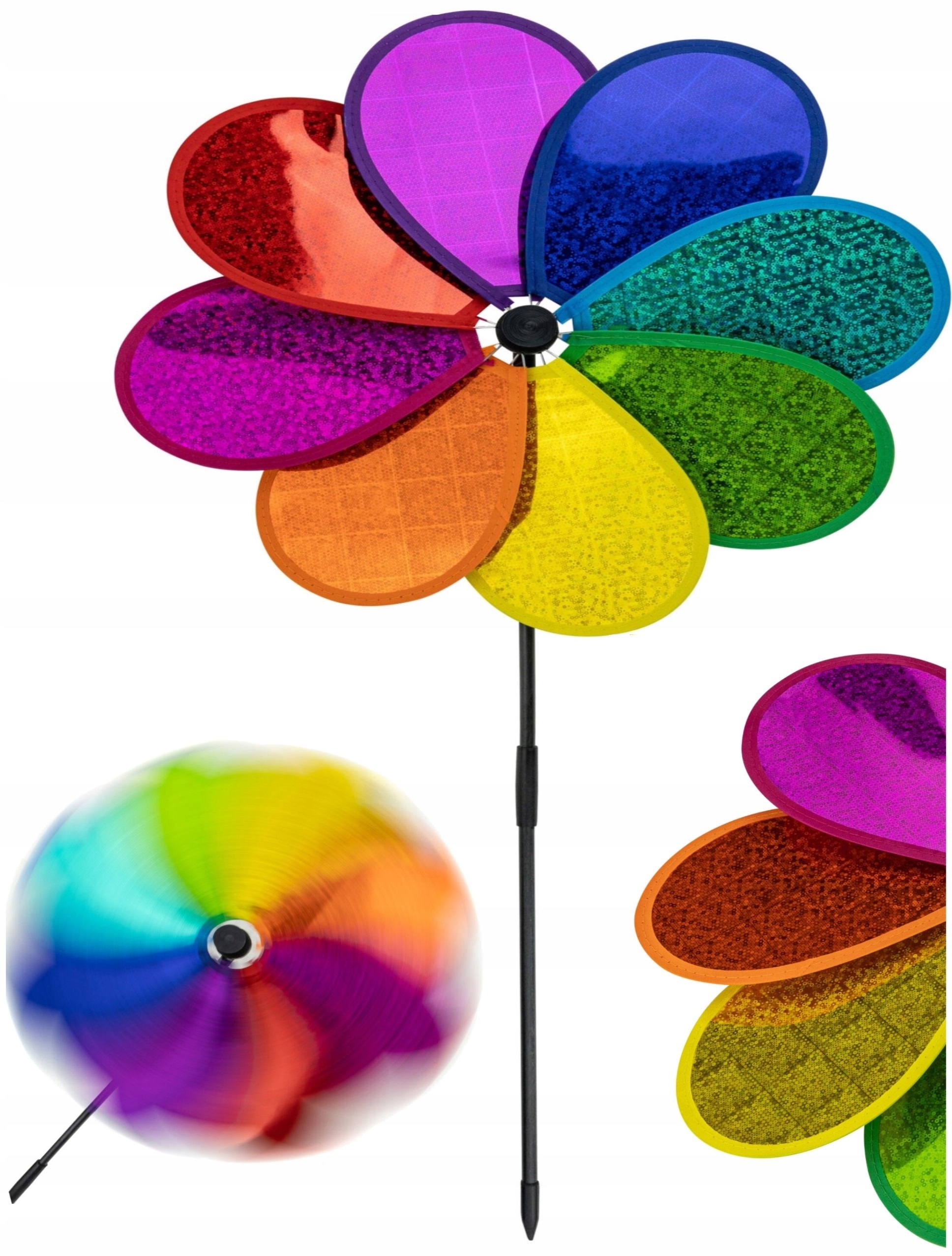 ⭐ Вертушка установлена на длинной складной палке, поэтому ее можно использовать разными способами. Прежде всего, он служит игрушкой для детей.