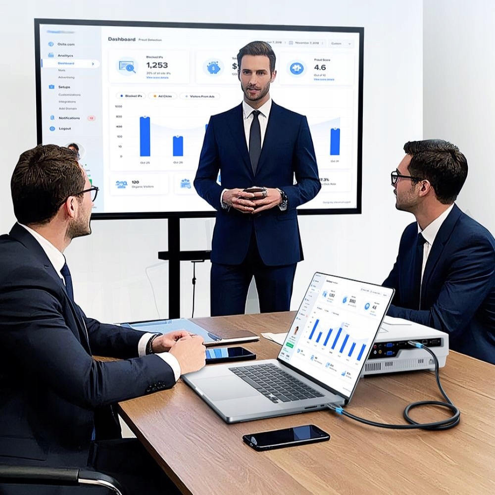 Бесшовное соединение с компьютерами, декодерами, консолями и любыми экранами, оснащенными портом HDMI. Кабель HDMI — надежный инструмент для офисной работы, конференций и презентаций. Он обеспечивает быструю и стабильную передачу высококачественного изображения и звука без помех. Он позволяет легко подключить ноутбук или другое устройство к монитору, проектору или телевизору. Это практичное решение, повышающее комфорт работы и способствующее эффективному сотрудничеству.