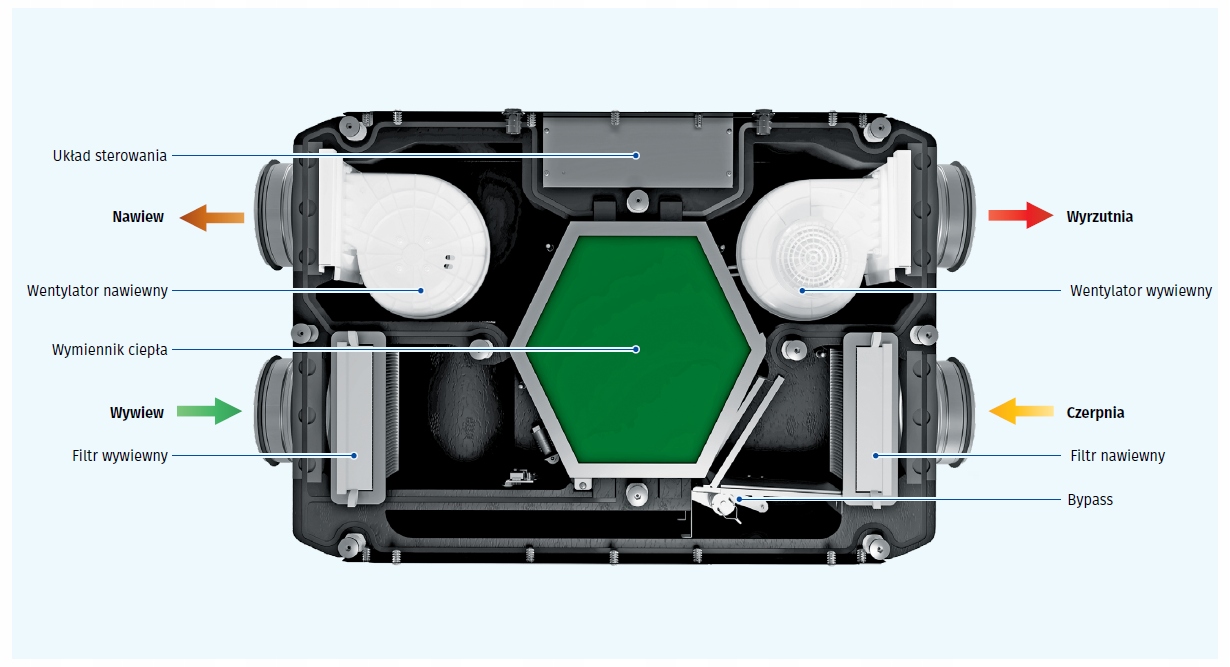 Управляемый воздухообмен обеспечивает оптимальный микроклимат в помещениях, повышая комфорт пользователей. Установка совместима с вентиляционными каналами диаметром 160 мм.