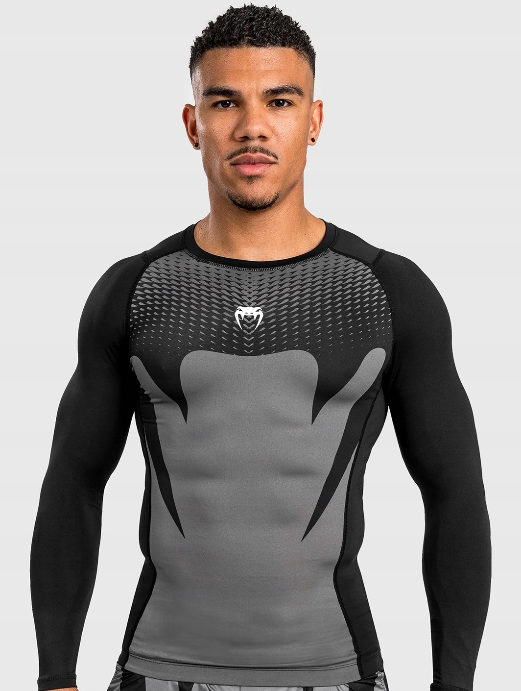Этот Rashguard in Black and Grey относится к логотипу Snake Venum, создавая впечатляющий рисунок спереди.
