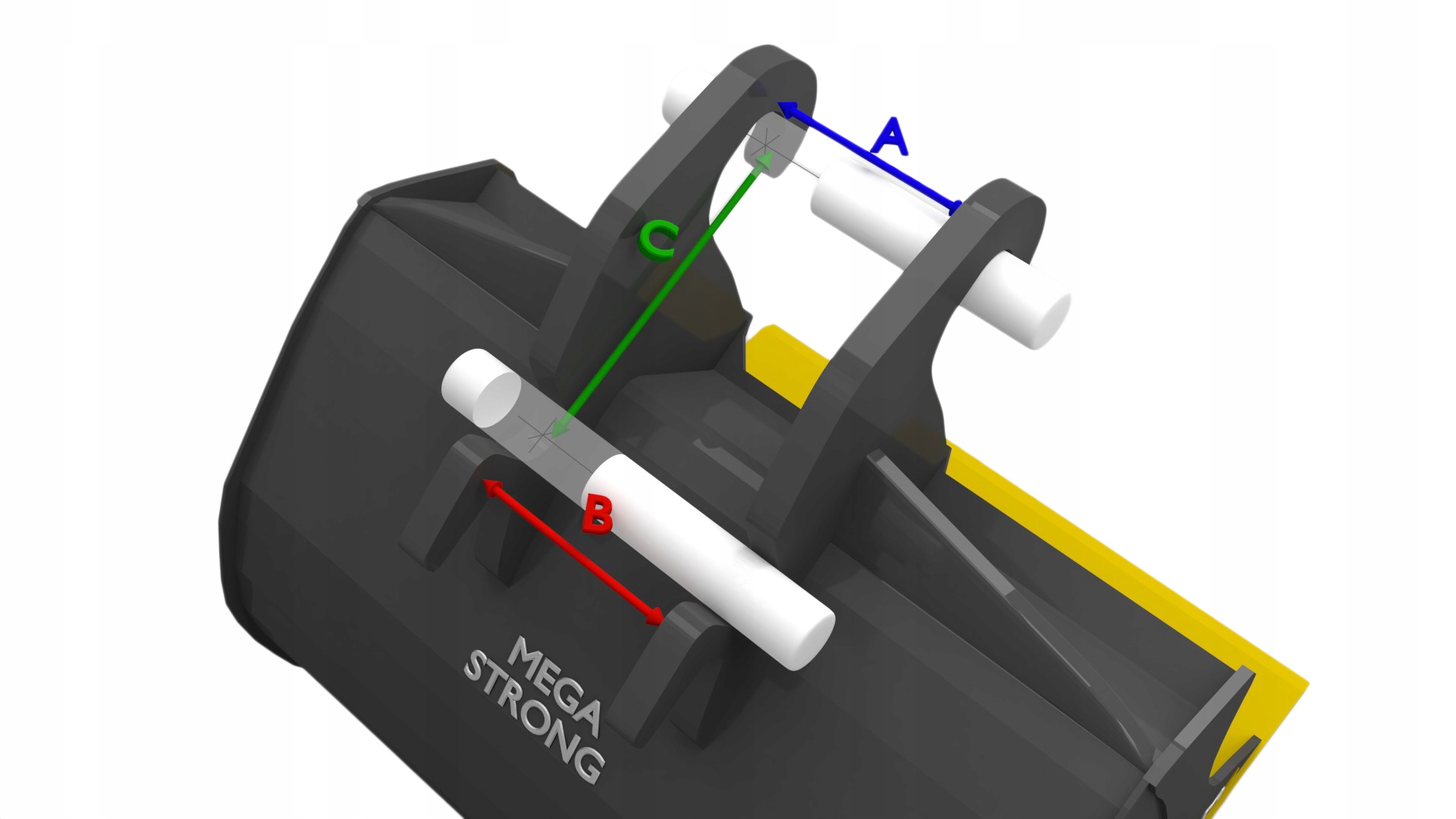 1. Ширина между креплениями или ширина быстроразъемного соединения, размеры A, B