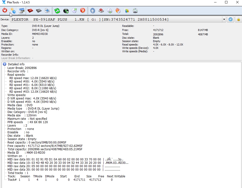 Vorbatim DVD -R DL MID: MKM03 -RD30 (идентификатор производителя)