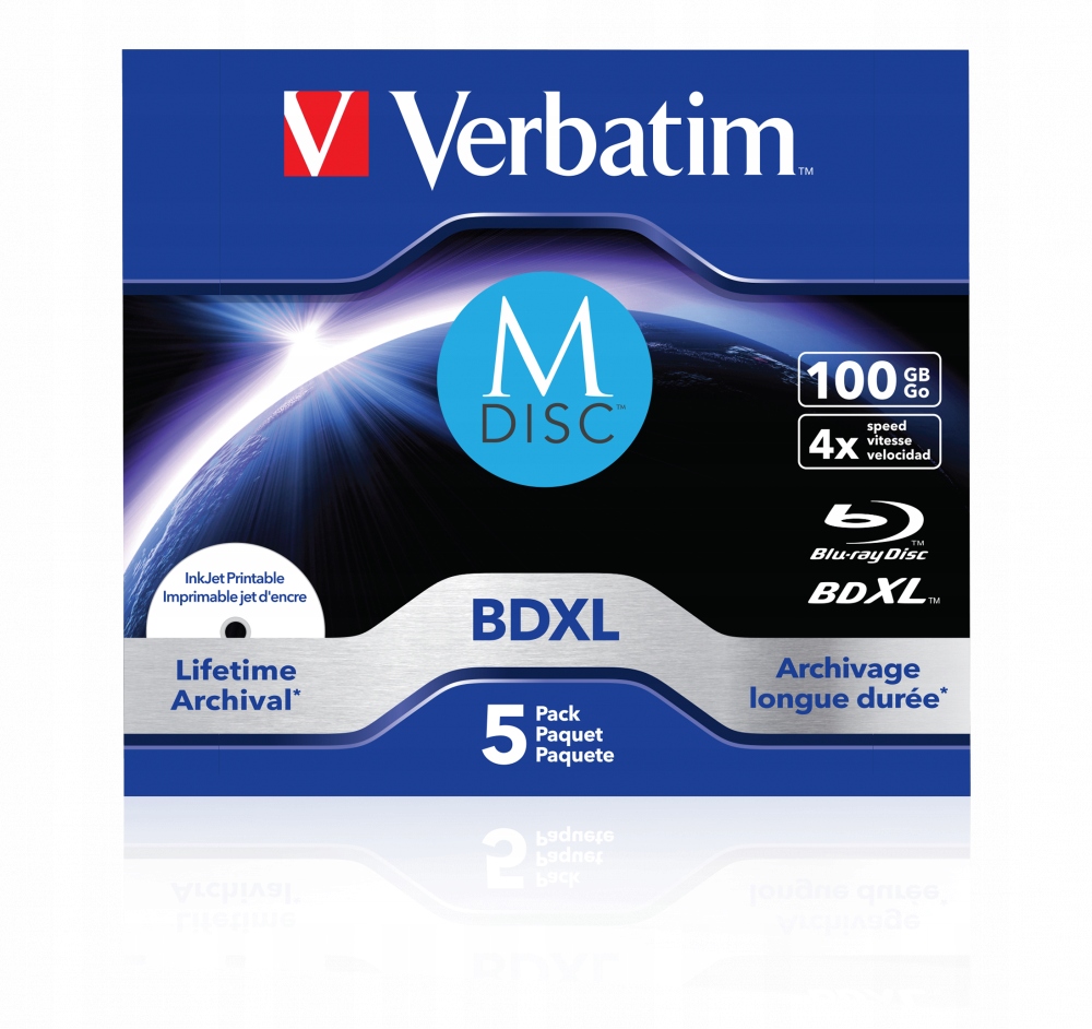 VERBATIM 43834 Verbatim BluRay M-DISC BD-R в футляре для драгоценностей 5, 100 ГБ, 4 шт., для струйной печати