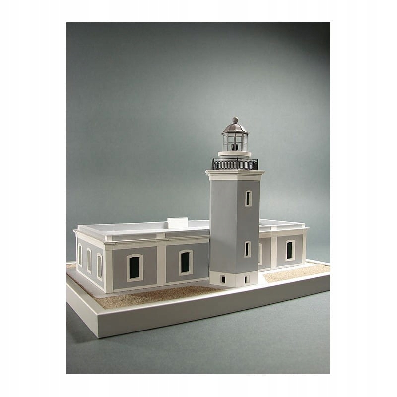 Маяк Лос-Моррильос-де-Кабо-Рохо, сборочный комплект из картона с лазерной резкой КАТ.НОМЕР. ZL:017 масштаб 1:72 высота модели: 16,5 см. В коробке: все детали, вырезанные лазером, история создания фонаря и инструкция по сборке, красочные фотографии модели, оконная пленка, набор акриловых красок, кисточка, шезлонг, растительность, песок. В комплект поставки модели не входит каркас для основания.
