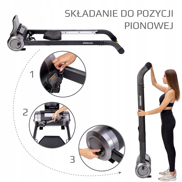 Модель ZM5005 представляет собой прочную конструкцию, несомненным преимуществом которой является возможность складывания. После этой процедуры тренажер можно поставить в вертикальное положение. Это экономит много места. Кроме того, его можно легко хранить на видном месте, поскольку благодаря стильному дизайну он впишется в любой дизайн интерьера. Благодаря транспортировочным колесам мы легко разместим его в удобном месте.
