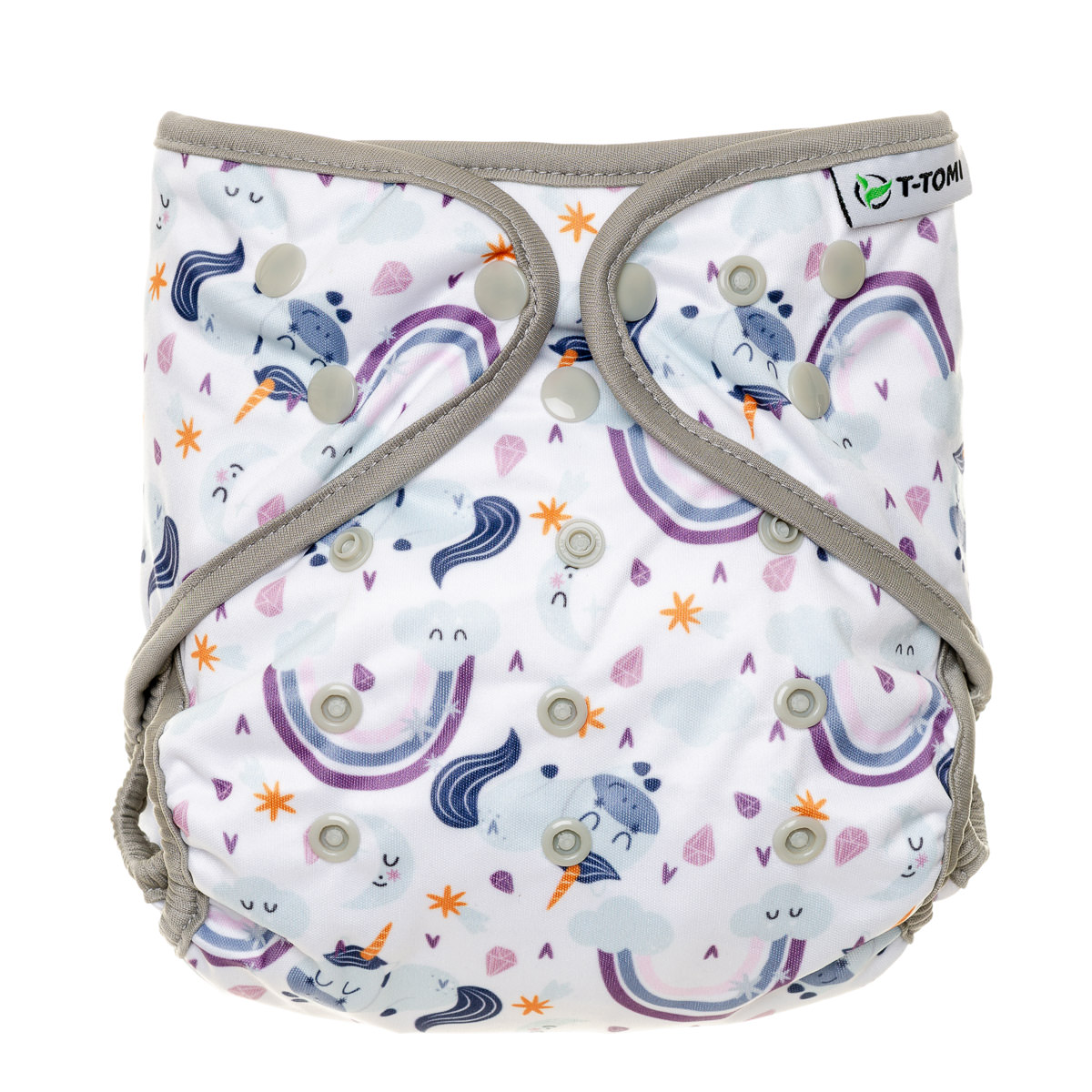 Внешние трусы T-TOMI из 100% полиэстера с полиуретановым покрытием непроницаемы, но при этом дышащие. Трусики оснащены кнопками для удобной регулировки размера. Они подходят для всех типов подгузников, включая квадратные, многослойные и трусики. Они удерживают подгузник на месте и защищают одежду от влаги, в том числе благодаря вшитым внутренним крылышкам.