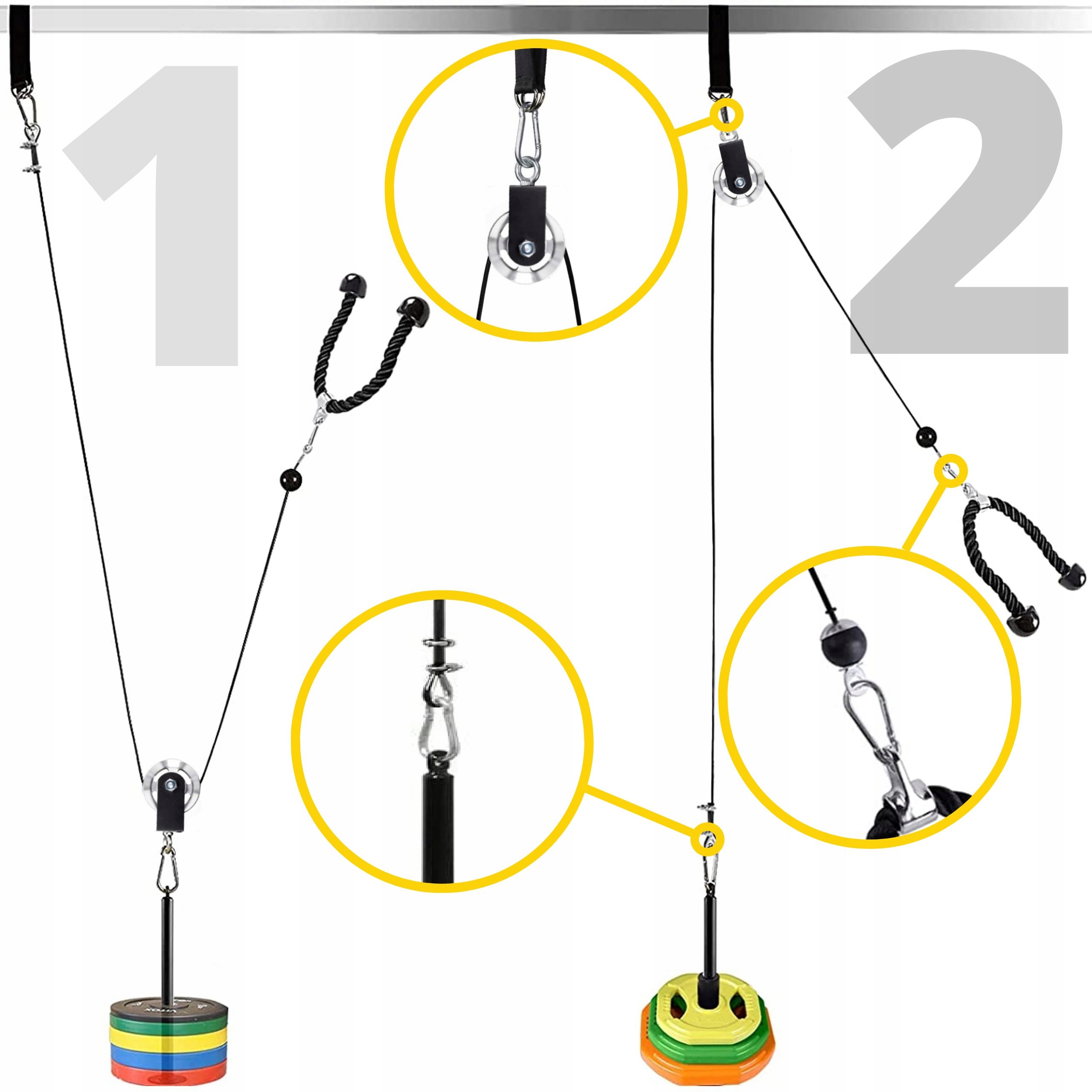 Наш трос для упражнений представляет собой комплект для самостоятельной сборки. Сборка всей конструкции очень проста и должна занять около 5 минут⌛ Чтобы правильно прикрепить трос к подъемнику, следуйте инструкциям ниже:
