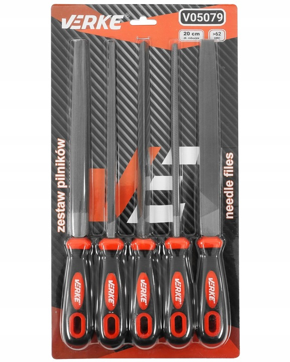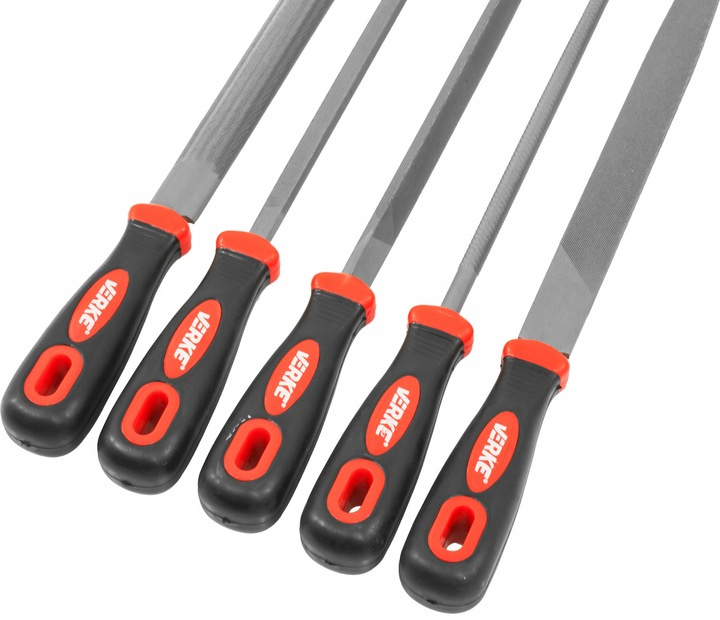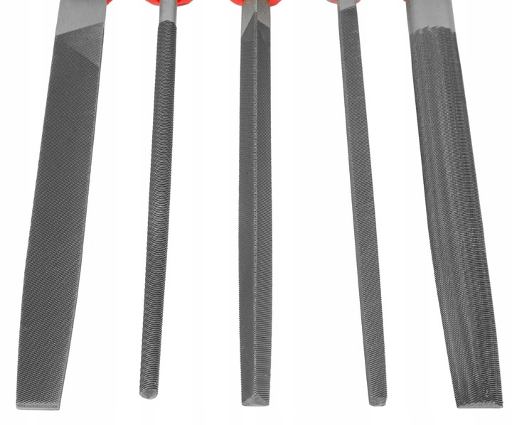 Набор включает в себя подделки с плоскими и полуаправыми профилями, а также круглый, треугольный и квадратный файл. Файлы дважды вырезаны с помощью прочных пластиковых ручек. Рабочая длина 20 см. HRC 62.