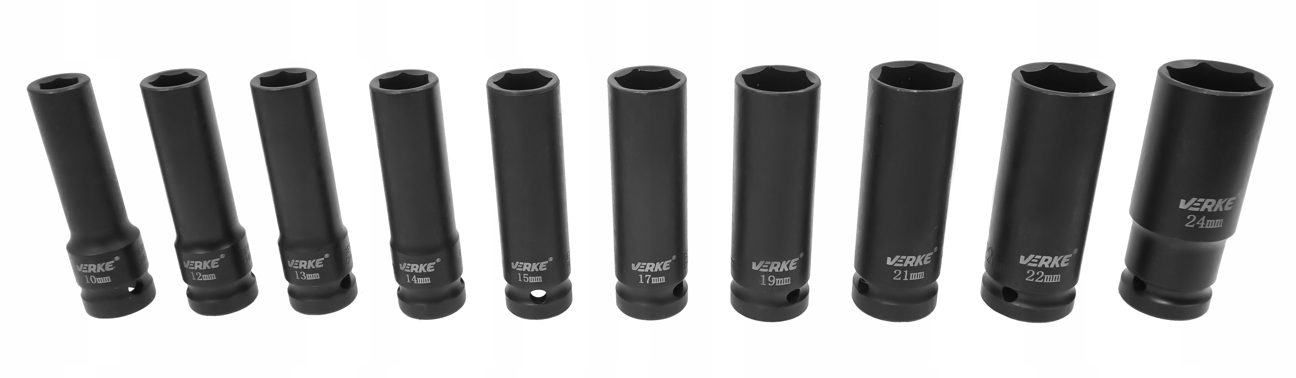 ГОЛОВКИ УДАРНЫЕ ДЛИННЫЕ 1/2" 10 ШТ 10-24мм VERKE