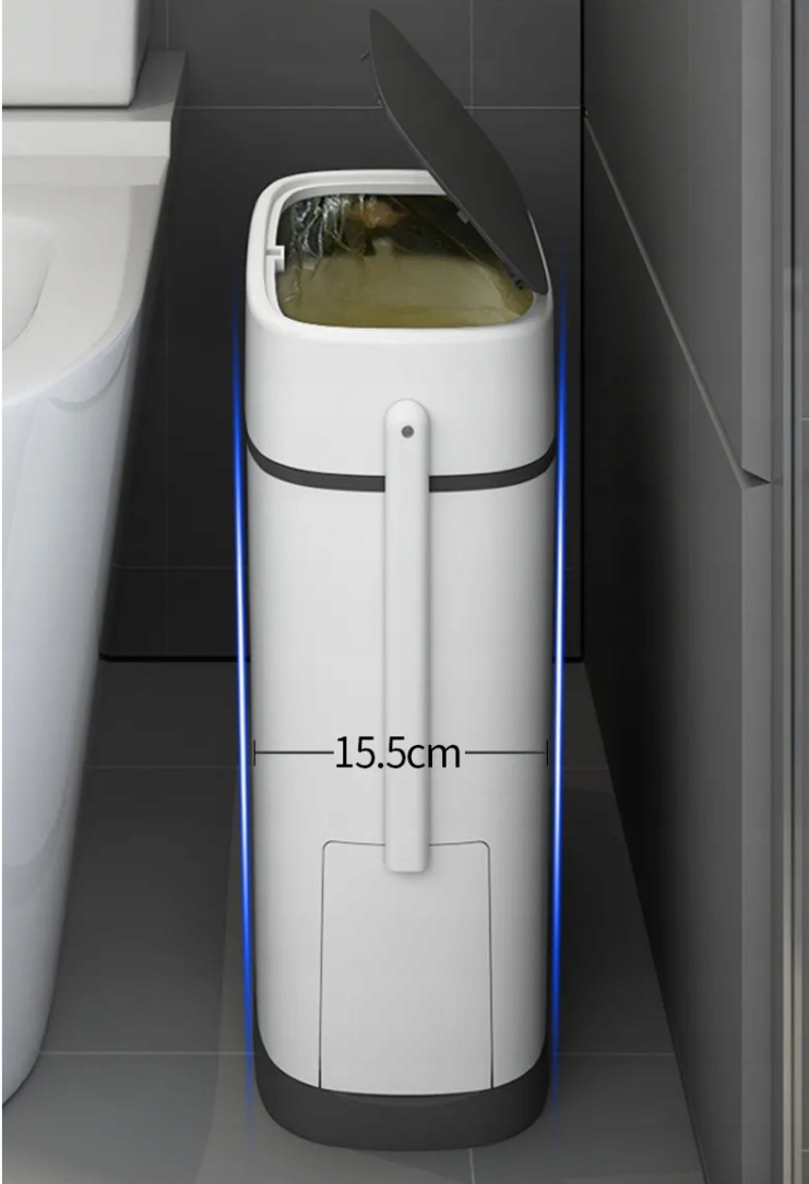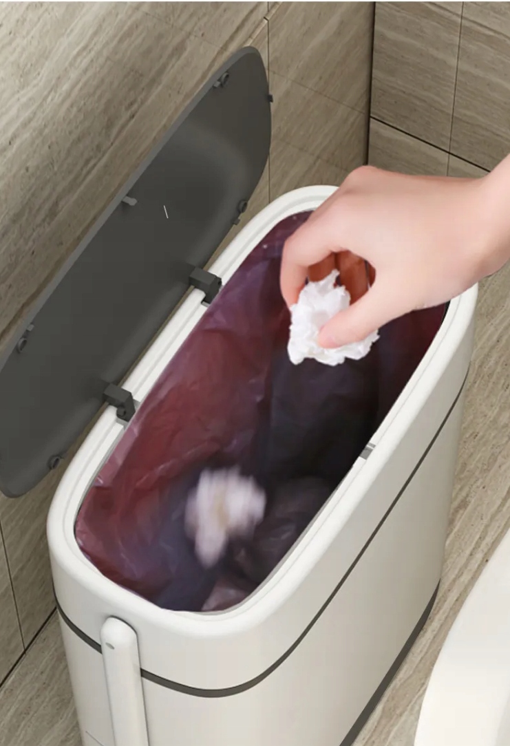 Новая интеллектуальная, инновационная мусорная корзина вместе с ершиком он прекрасно впишется в любую ванную комнату.