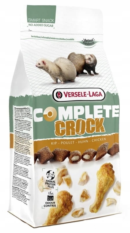 Crock Complete Chicken – вкусное и полезное лакомство для хорьков. Хрустящая оболочка удовлетворяет инстинкт кусания, а нежная начинка из птицы обогащена витаминами и кислотами омега 3. Crock Complet должен составлять максимум 25% дневной пищевой порции.