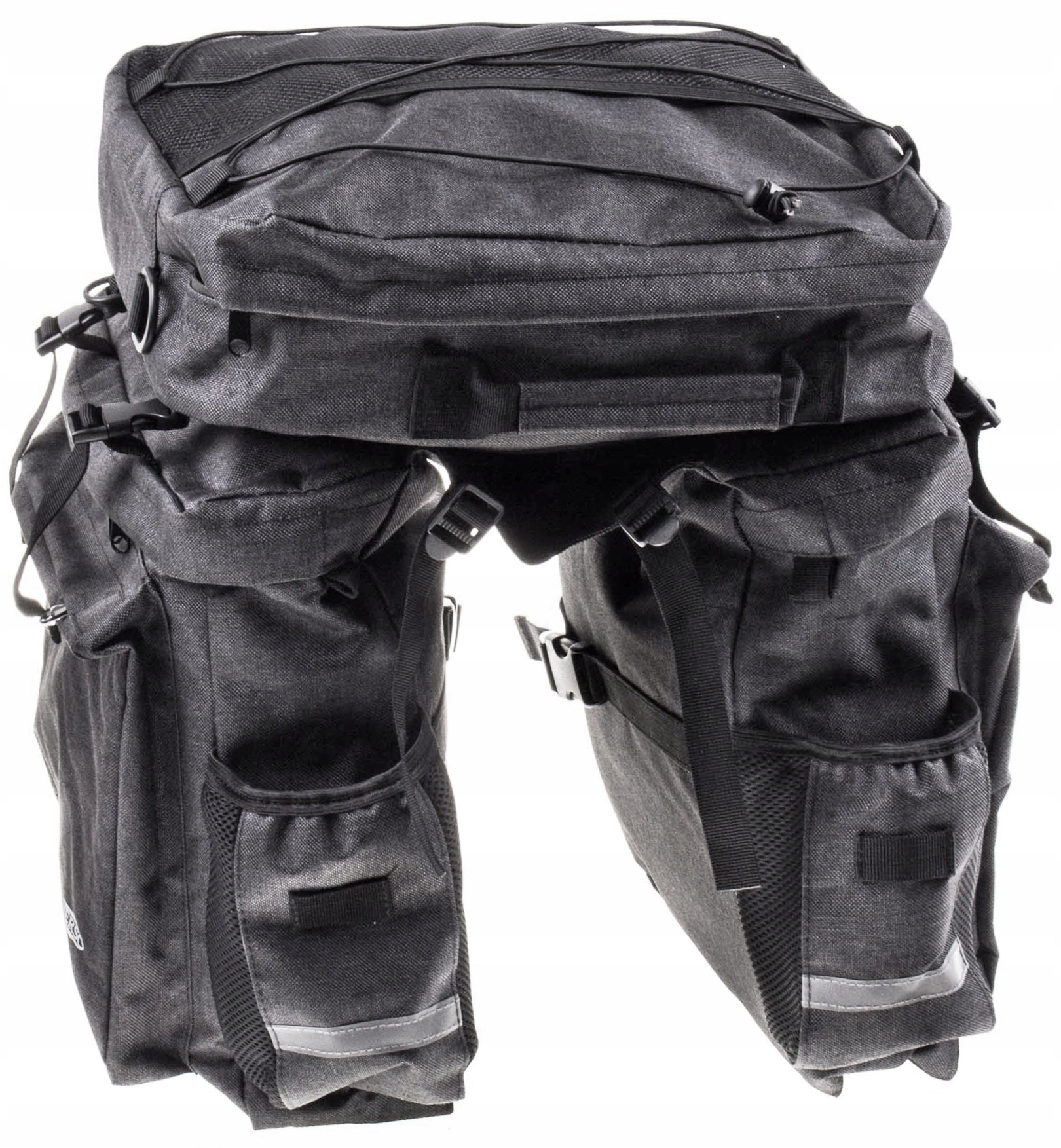 Велосумка с 3 отделениями от Verso. Очень вместительная и практичная сумка, предназначенная для крепления к креплению для велосипедов. Он подходит для длительной поездки на велосипеде. Общая емкость перегородок составляет 50 литров. Сумка изготовлена из прочного и устойчивого к механическим повреждениям материала, поэтому вы можете в полной мере воспользоваться ее вместительностью и долговечностью, не опасаясь ее разрушения. Сумка имеет два боковых отделения размерами 30х19х34см и верхнее отделение размерами 35х11х32,5см, оснащенное ручкой и плечевым ремнем. Кроме того, в боковых камерах имеются небольшие отсеки, предназначенные для транспортировки напитков. Боковые отделения соединяются между собой, а верхнее отделение отстегивается с помощью регулируемых ремней с пряжками. Все основные отделениязастегиваются на молнии.