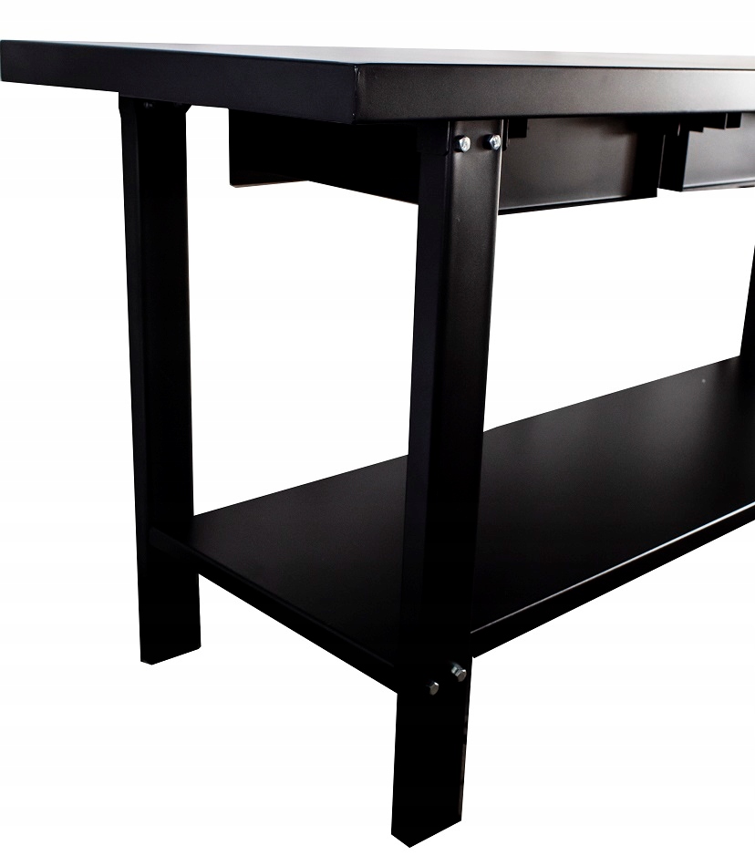 Стол оснащен тремя практичными выдвижными ящиками, которые позволяют безопасно хранить инструменты и аксессуары. Ящики закрываются на ключ, что повышает безопасность и защищает от несанкционированного доступа. Металлическая столешница не только прочна, но и легко чистится, что имеет решающее значение для поддержания порядка и гигиены в мастерской.