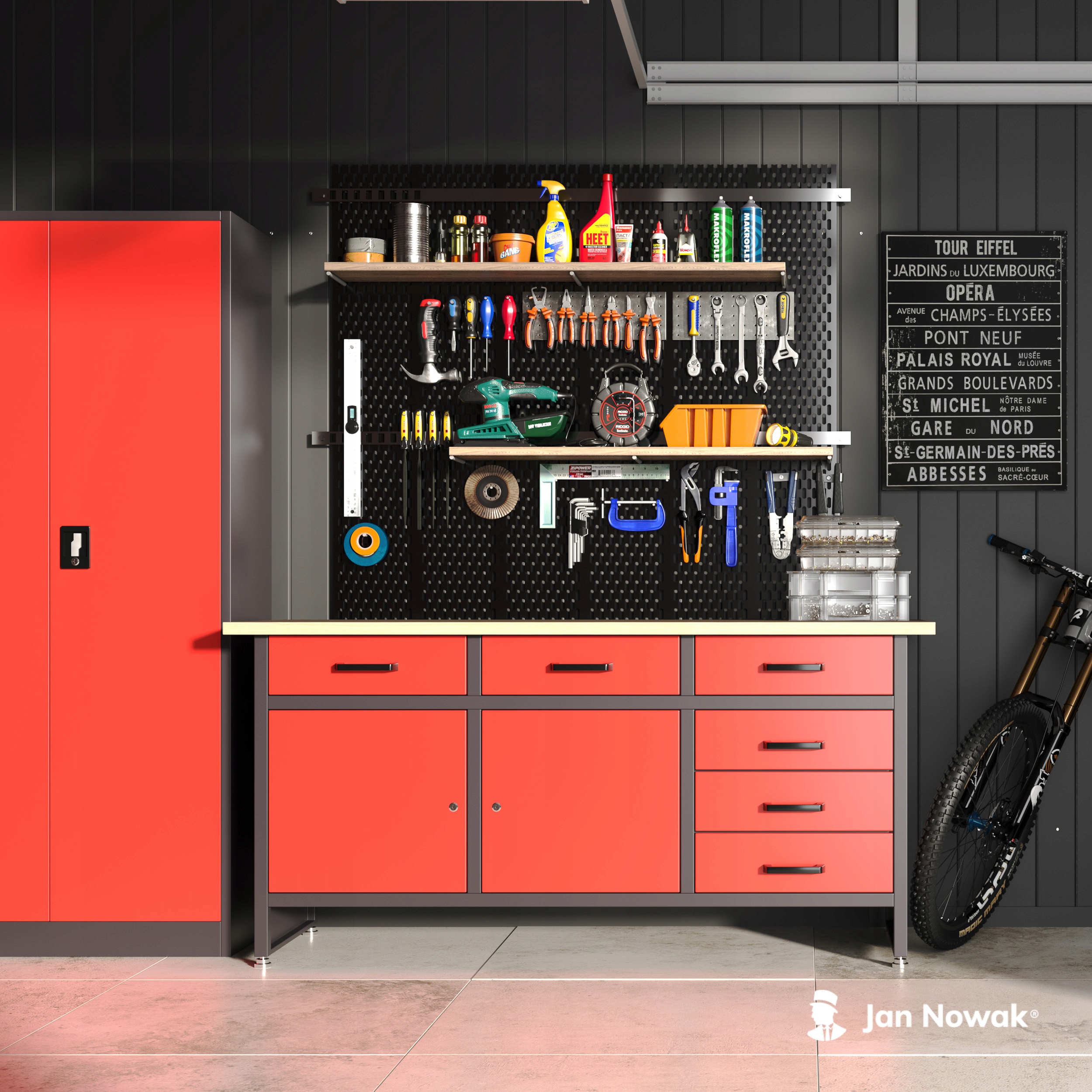 Верстак HENRY выделяется среди других огромными размерами. зона хранения. Все ваши инструменты, ключи, отвертки, гайки, винты и клей найдут свое место в одном из шести ящиков или двух шкафов. Это сделает поддержание порядка на вашем рабочем месте легким и приятным. Верстак HENRY предназначен для самостоятельной сборки. Его можно без проблем собрать примерно за 15 минут.
