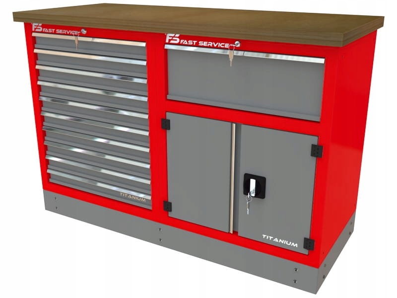 Столешница изготовлена из многослойной пропитанной фанеры твердых пород толщиной 40 мм. Прочная столешница для тяжелой работы, особенно в тисках. Вес самой столешницы у столов шириной 1400 мм составляет примерно 20 кг, у столов шириной примерно 2000 мм - более 30 кг
