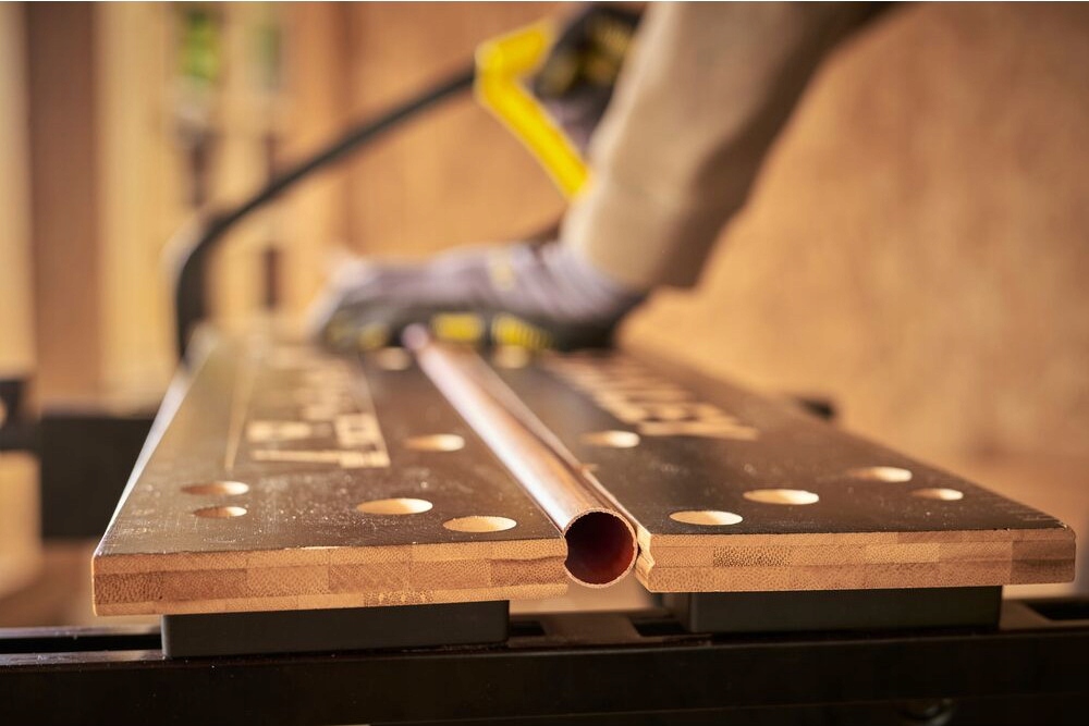 - Встроенные V-образные канавки для резки труб и поддержки других круглых элементов.