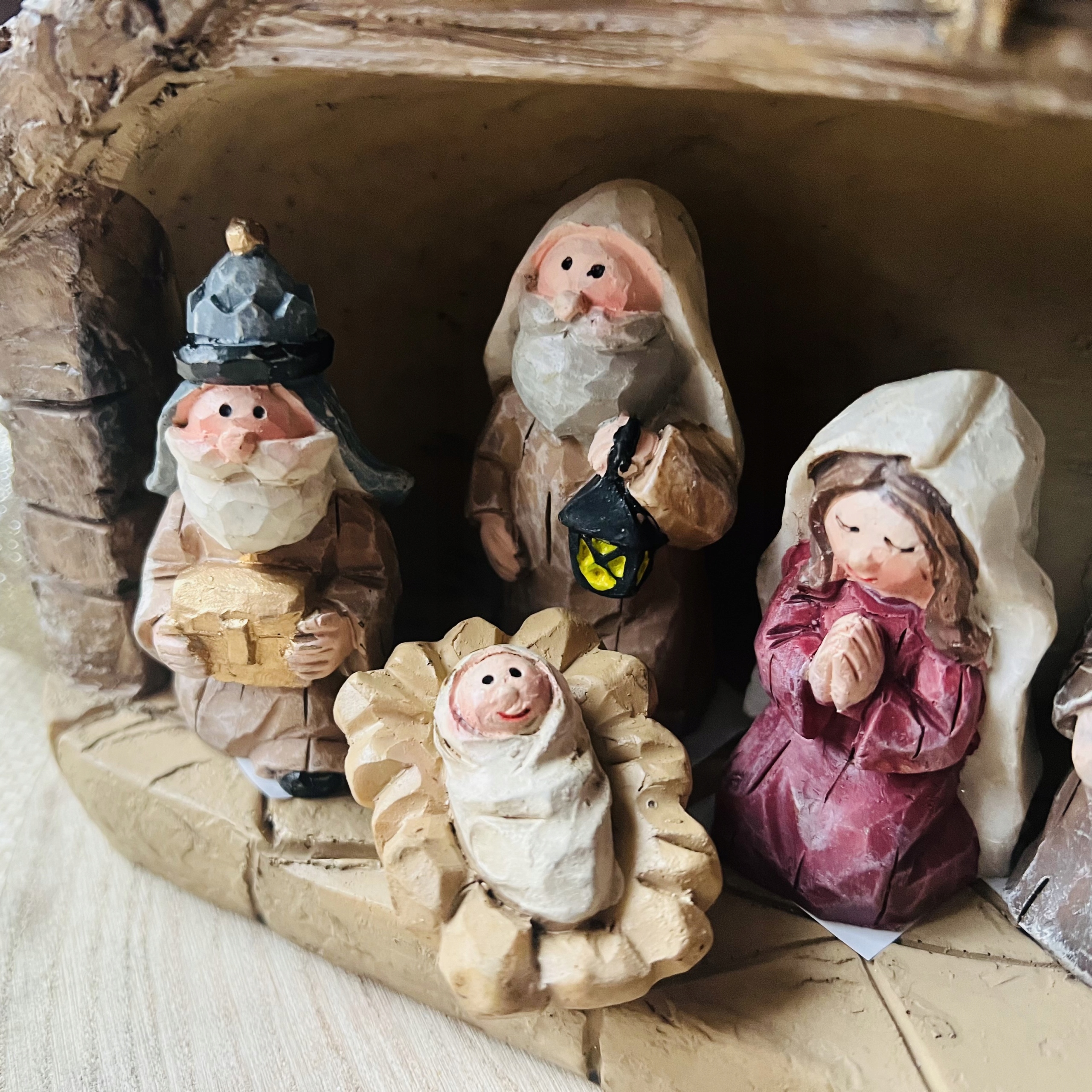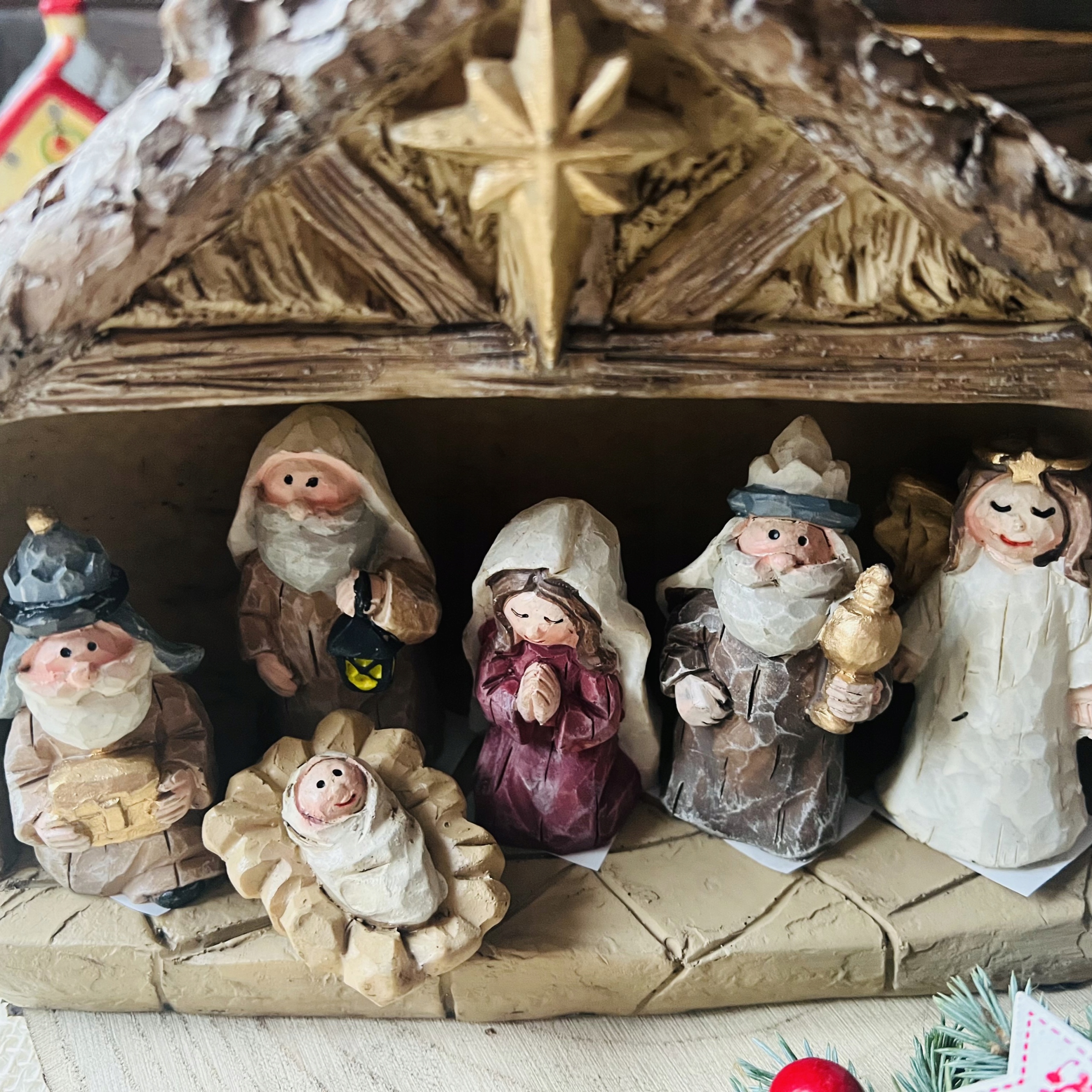 - Размеры: Вертеп - 22,5 х 18 х 10 см, Статуэтки - 7 х 5 х 4 см, Иисус - 3 х 4,5 см.