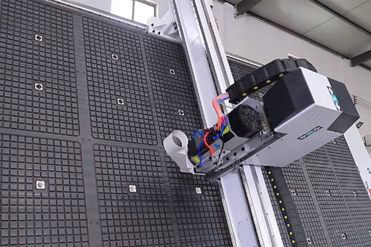 Вертикальный фрезерный участок CNC индустрии 2.0 серии ATC с рабочей поверхностью 2100x4200 мм и закрытый в AXIS с равным 200 мм ELEPATITITITIT-9 мм. , 24000 об/мин . на керамическом позиционировании.