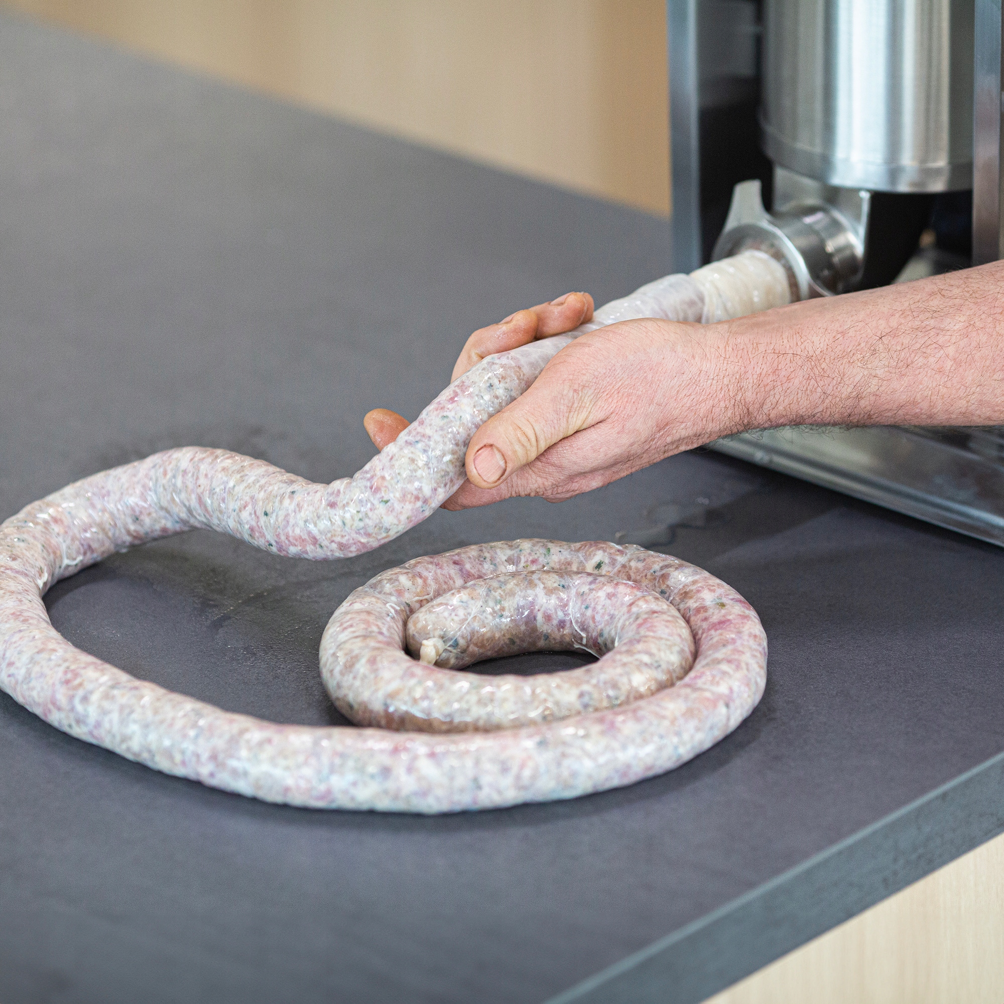 Вот вертикальный наполнитель, который сделает вашу работу более эффективной, комфортной и обеспечит результаты профессионального качества. В вашем распоряжении емкость до 7 л и 6 различных воронок с системой вентиляции, включая специальную воронку для колбасок кабанос. С помощью этого оборудования вы легко сможете создавать колбаски разного диаметра (ø 14/18/21/25/29/35 мм) и придавать им идеальную структуру. Для фарширования можно использовать бараньи, свиные, говяжьи кишки, полиамидные оболочки, белковые оболочки и т.д.