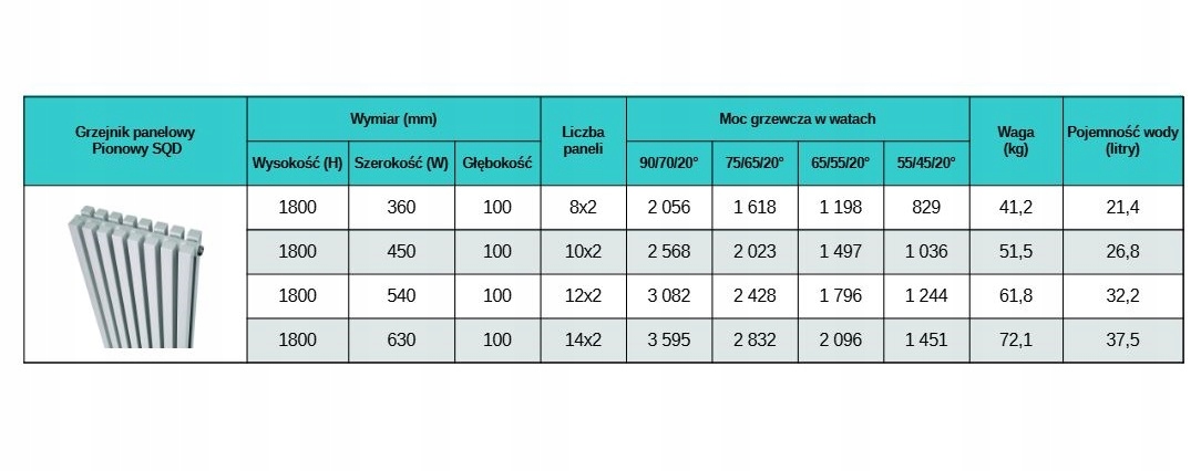 Sqd Радиатор доступен в четырех ширинах и двух цветах - белый и черный матовый. Эта комбинация позволяет вам соответствовать радиатору с различными интерьерами и потребностями пользователей. Универсальный, вертикальный дизайн означает, что модель SQD отлично подходит как для современных квартир, так и для офисных помещений, предлагая не только эффективное отопление, но и последовательную эстетику.