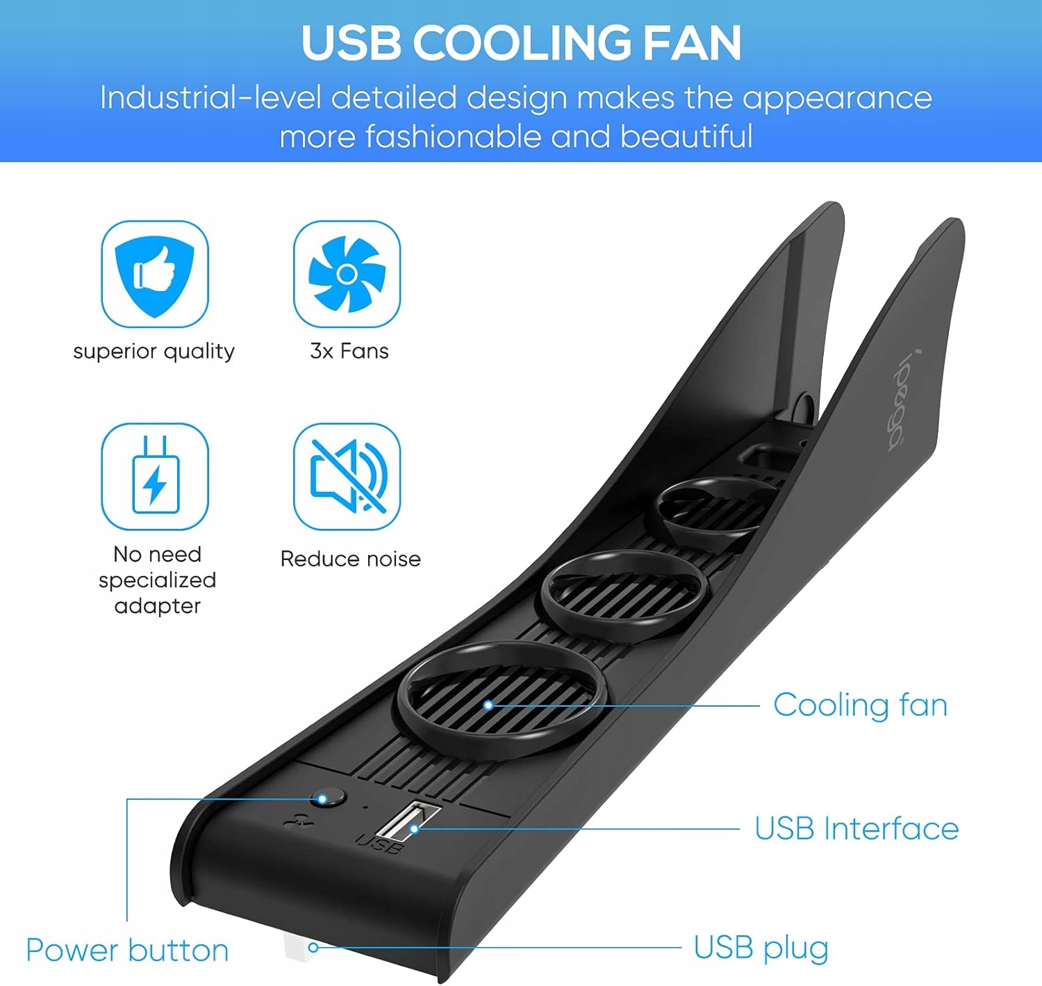 Вертикальна підставка FASTSNAIL із вентилятором охолодження 2 в 1, сумісний із PS5