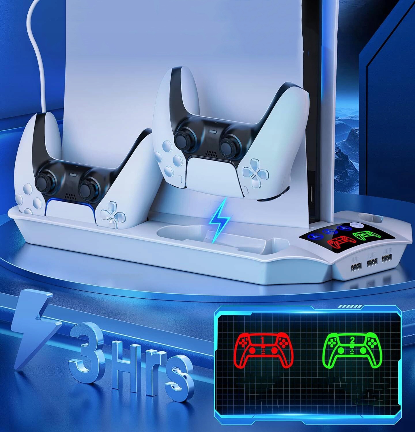 ✅ 3 дополнительных порта USB – Подставка имеет 3 дополнительных порта USB, которые можно использовать для зарядки других контроллеров PS5, гарнитуры PS5, HD-камеры PS5 или других USB-устройств.