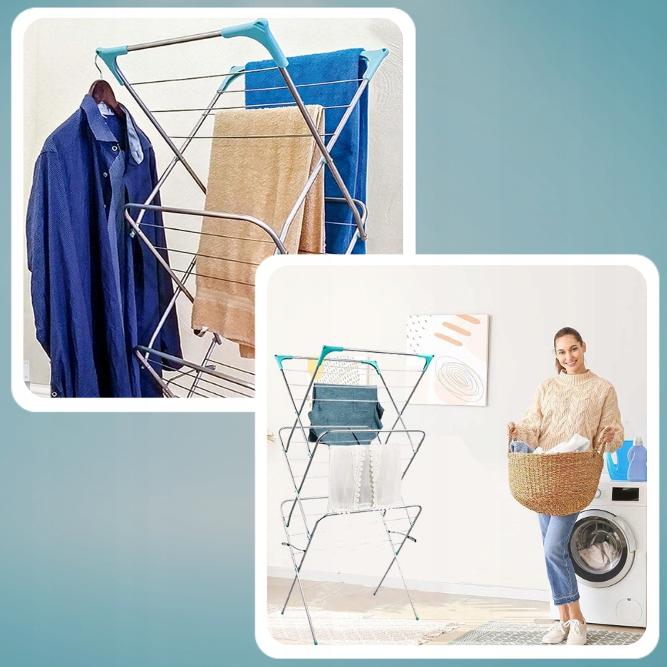 Отдельностоящая вертикальная сушилка не только обеспечит много места для вашей одежды — она имеет 6 складных крыльев / 2 стержня на каждый, но и сэкономит ценное пространство в вашей квартире.