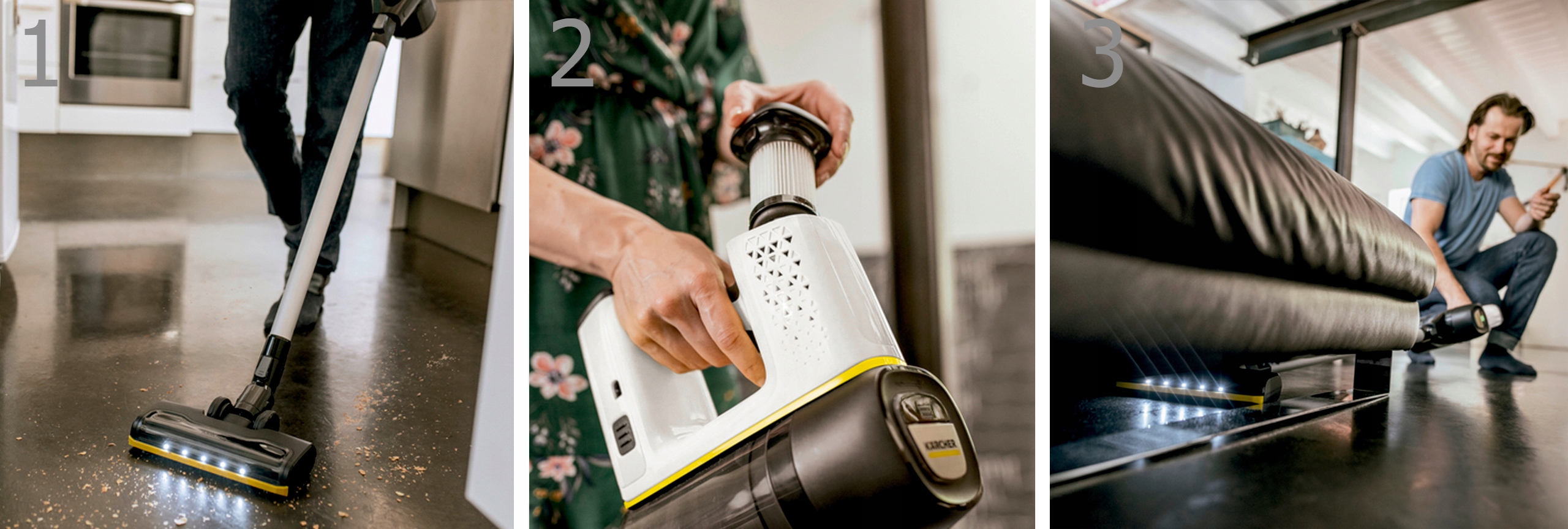 Свобода движений и комфорт. Благодаря беспроводному пылесосу VC 6 OurFamily уборка становится настоящим удовольствием: устройство оснащено множеством интеллектуальных решений, таких как: опорожнение резервуара для мусора одним щелчком мыши, режим Boost, эргономичный дизайн для уборки труднодоступных мест, светодиодное освещение активная насадка для пола, которая делает пыль четко видимой и гарантирует эффективное удаление загрязнений.