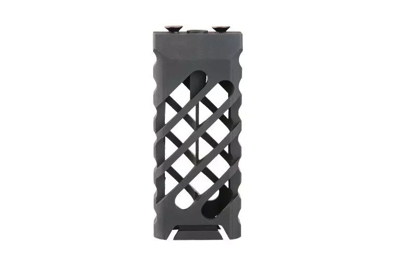 изготовлен из алюминия на машинах с ЧПУ, вертикальная ручка, предназначенная для установки на дополнительных направлениях в стандарте Keymod. Ручка имеет скелетную структуру, поэтому она обеспечивает высокую прочность (благодаря используемому материалу) и в то же время низкий вес.