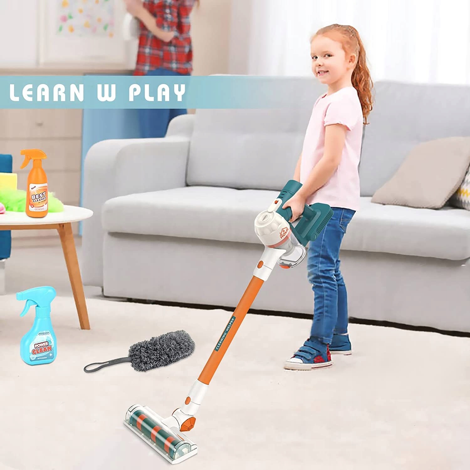 Набор с игрушечным вертикальным пылесосом оснащен функцией всасывания. У него есть съемный контейнер для мусора, который вы можете опорожнить самостоятельно.