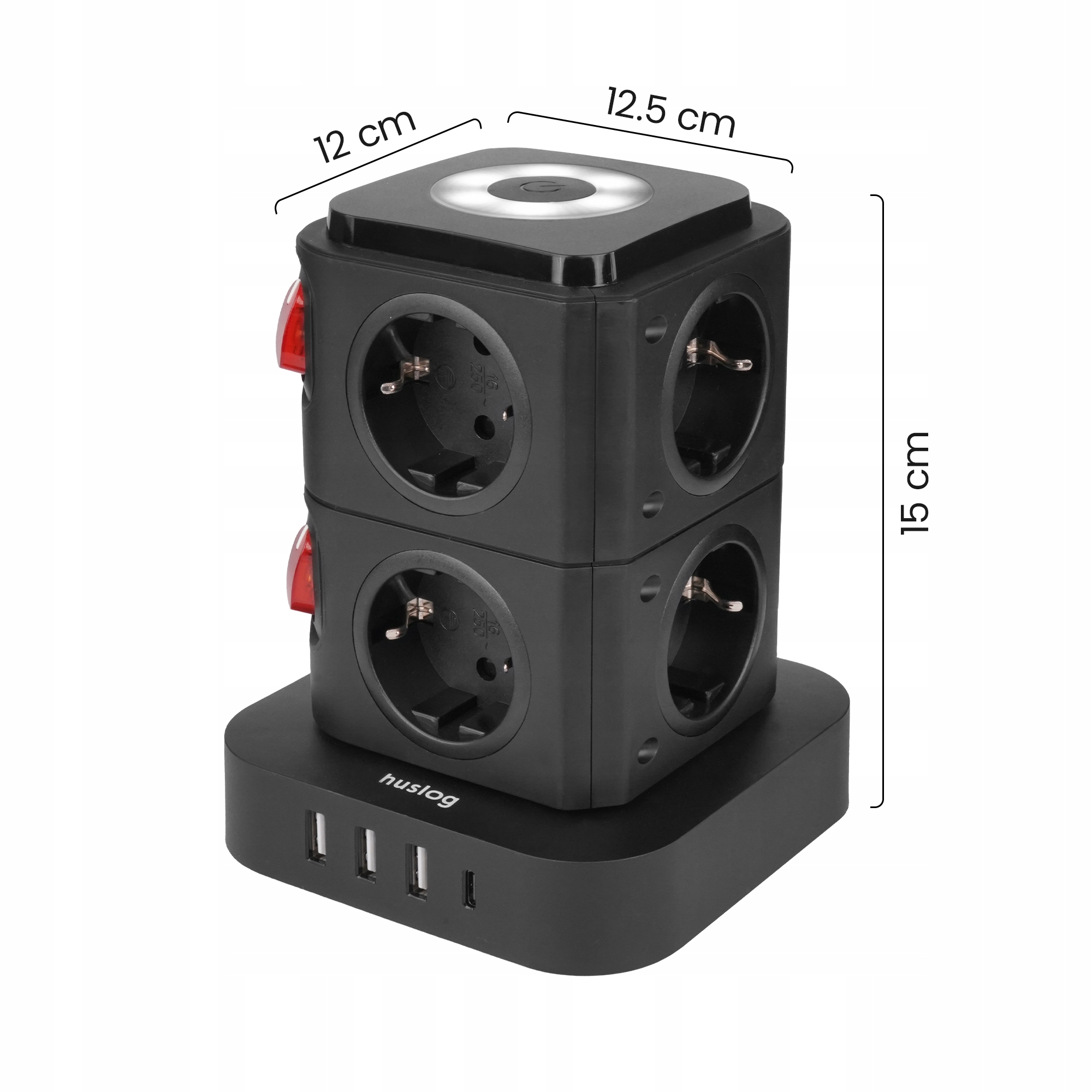 Вертикальный удлинитель со светодиодом, сетевым фильтром, 8 розеток, USB-A, USB-C