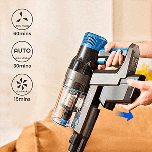 Беспроводной пылесос имеет 3 режима всасывания. Максимальный режим создает силу всасывания 30 000 Па, что соответствует всем различным типам очистки.