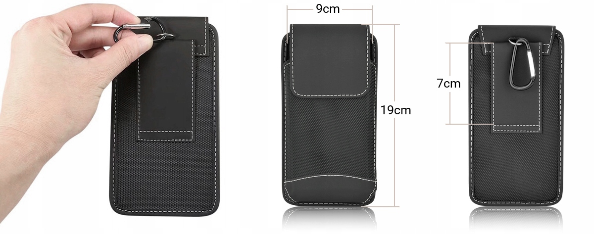 Кобура изготовлена из высокопрочного материала и идеально подходит для защиты вашего телефона. Прикрепите его к ремню с помощью двойной петли или прилагаемого карабина. Внутри чехол покрыт мягкой тканью, которая защищает устройство от царапин. Металлическая петелька, вшитая сзади, позволяет прикрепить, например, поводок. Кейс закрывается на прочную липучку.