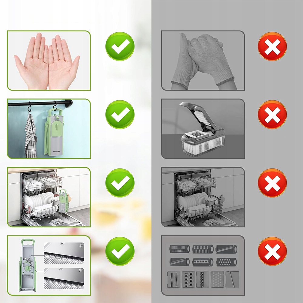 Размешайте больше пищи одновременно. Улучшенный дескриптор автоматически отражается после нажатия, сохраняя больше усилий. Встроенное лезвие из нержавеющей стали 420 подходит для обрезки большого картофеля, помидоров, огурцов, яиц, овощей и фруктов.