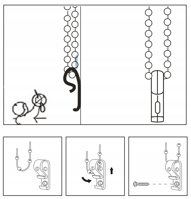 Каждая маркиза оснащена держателем на цепочке, который можно прикрепить к стене. Благодаря этому цепочка всегда натянута, не висит безвольно и не образует опасную для ребенка петлю.