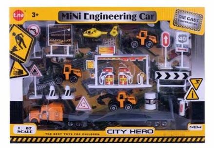 включены. Топливная станция, персонажи Pachołki Road, грузовик, три строительные машины и вертолет.