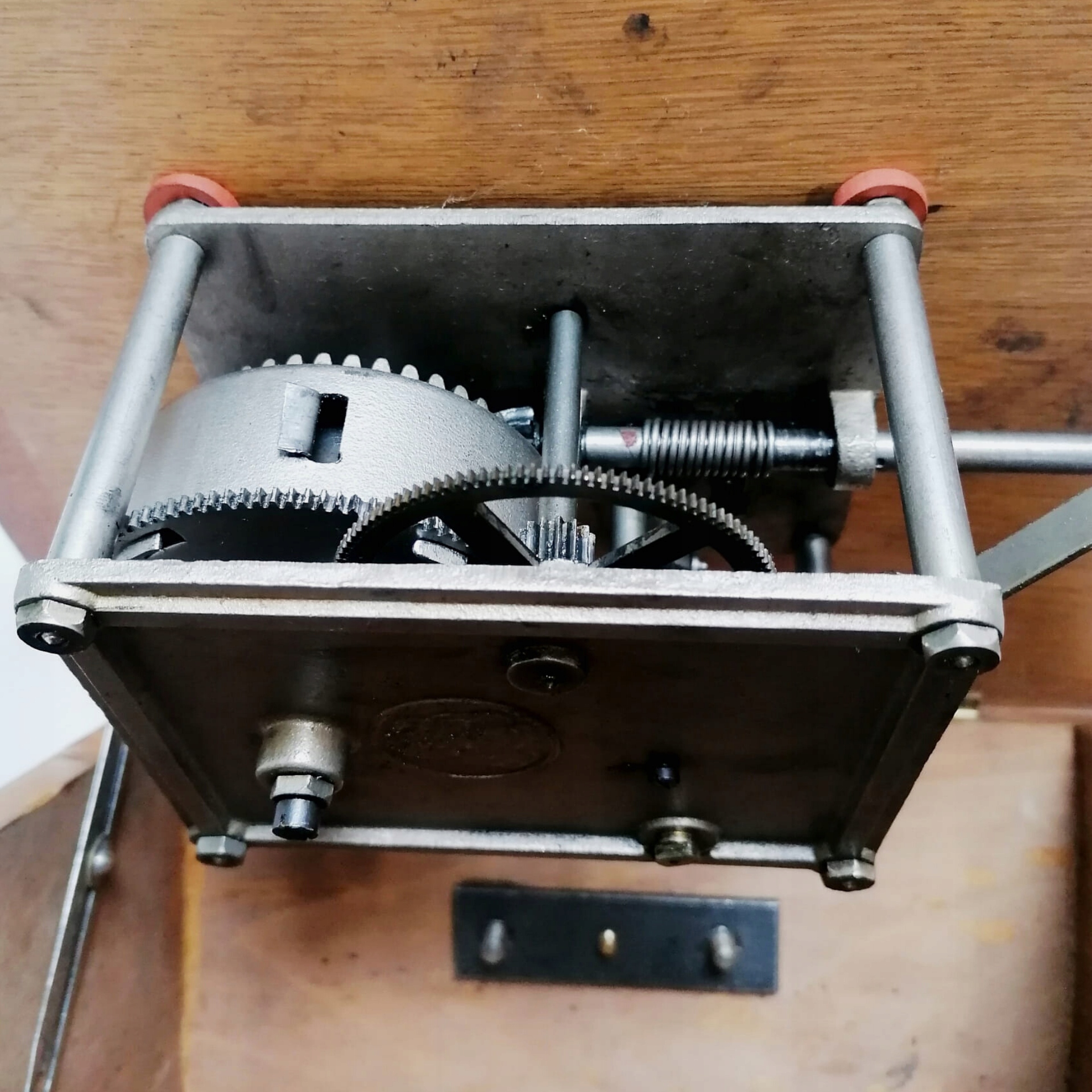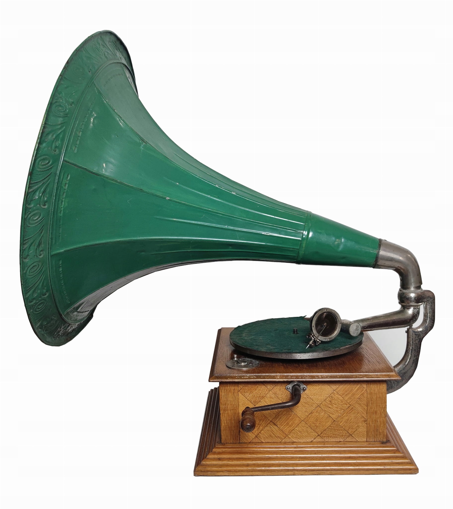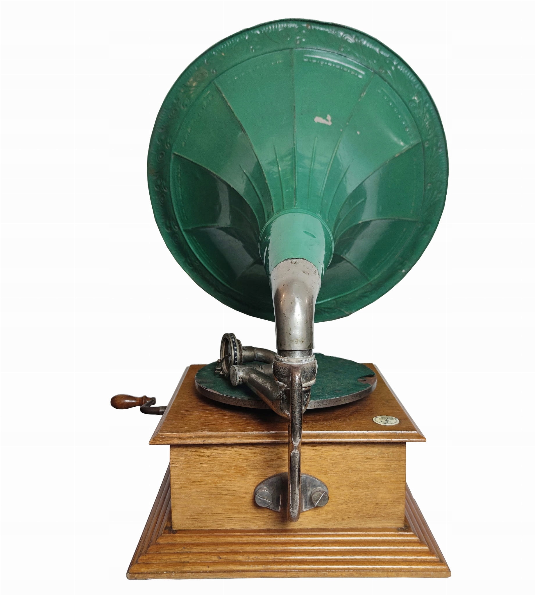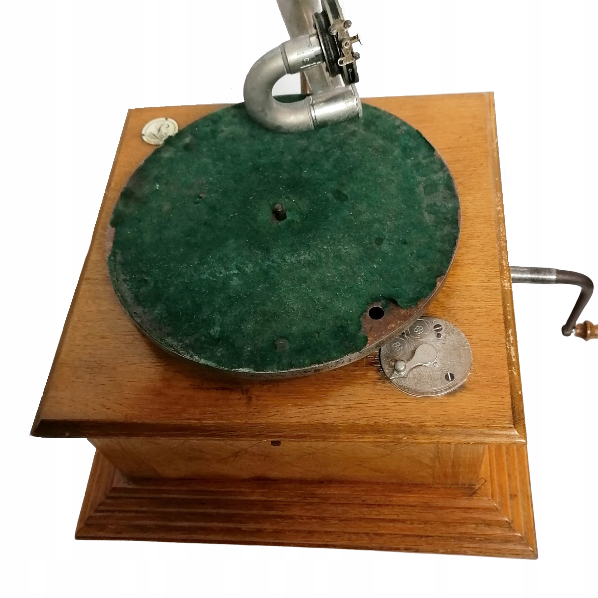 Проигрыватель работает на рукоятке. Имеет механический привод - пружину, заведенную с помощью кривошипа, и не требует подключения к электричеству.