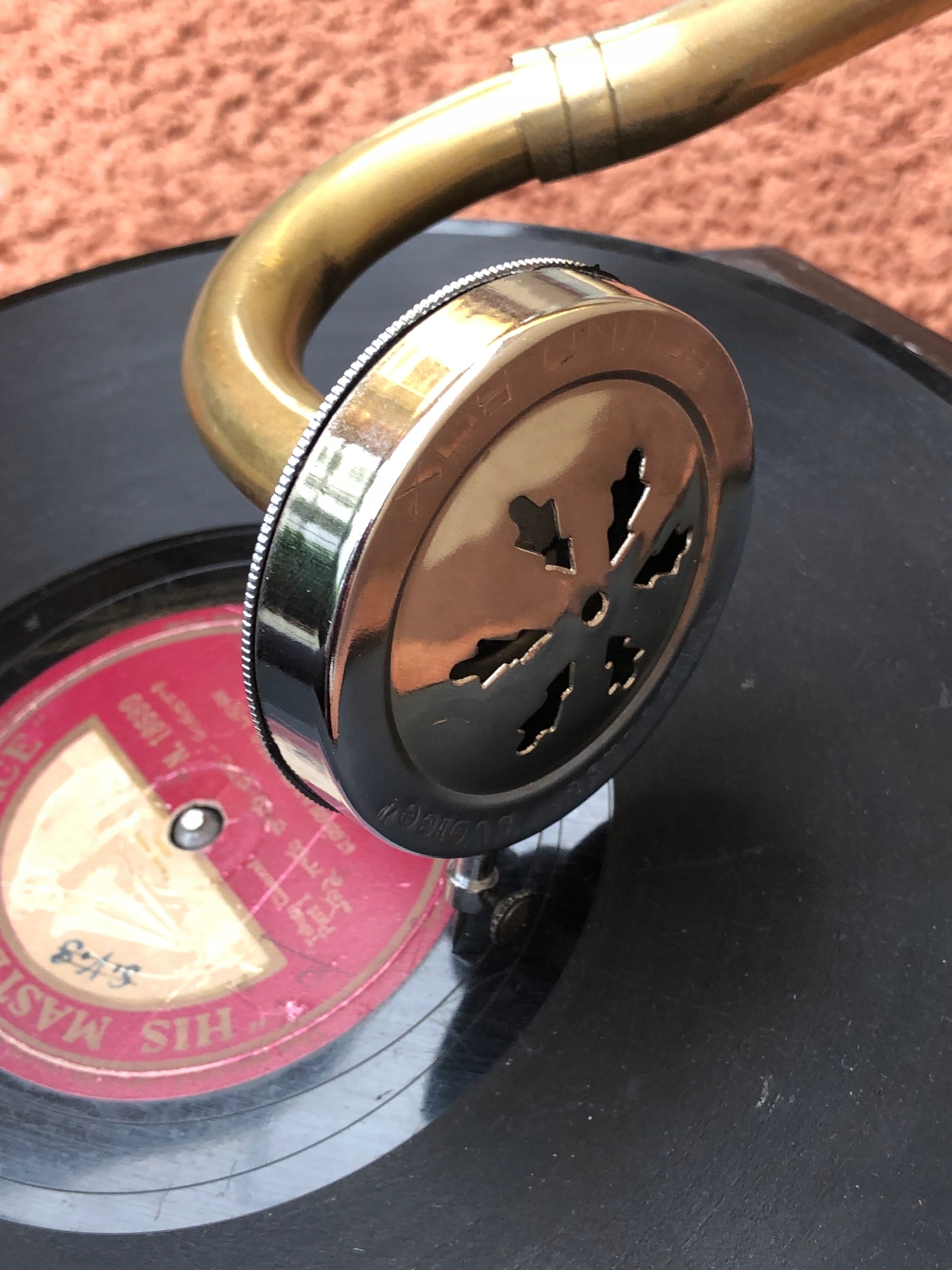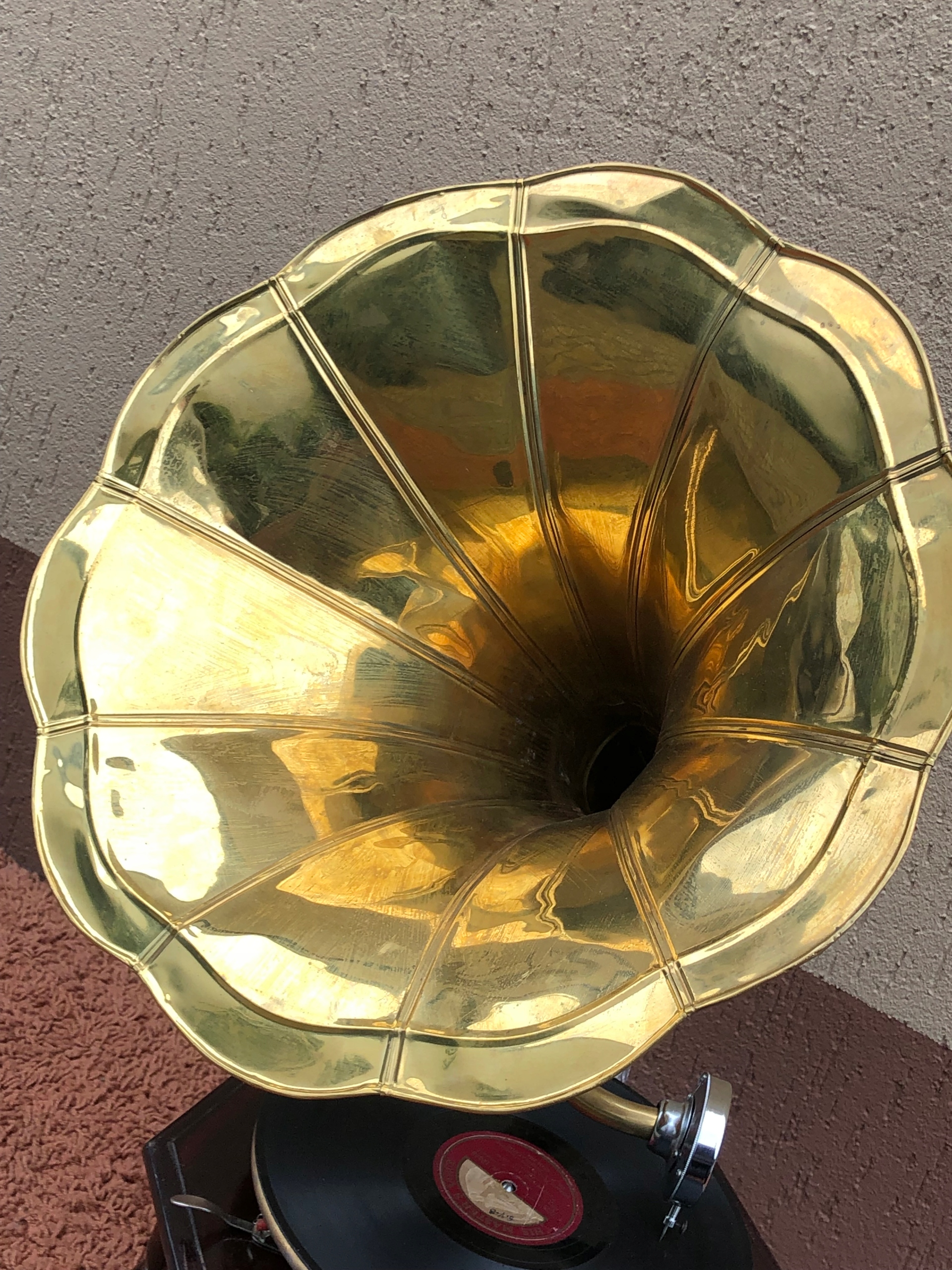 ГРАММОФОН КОРИЧНЕВЫЙ Восьмиугольный проигрыватель, золотая трубка