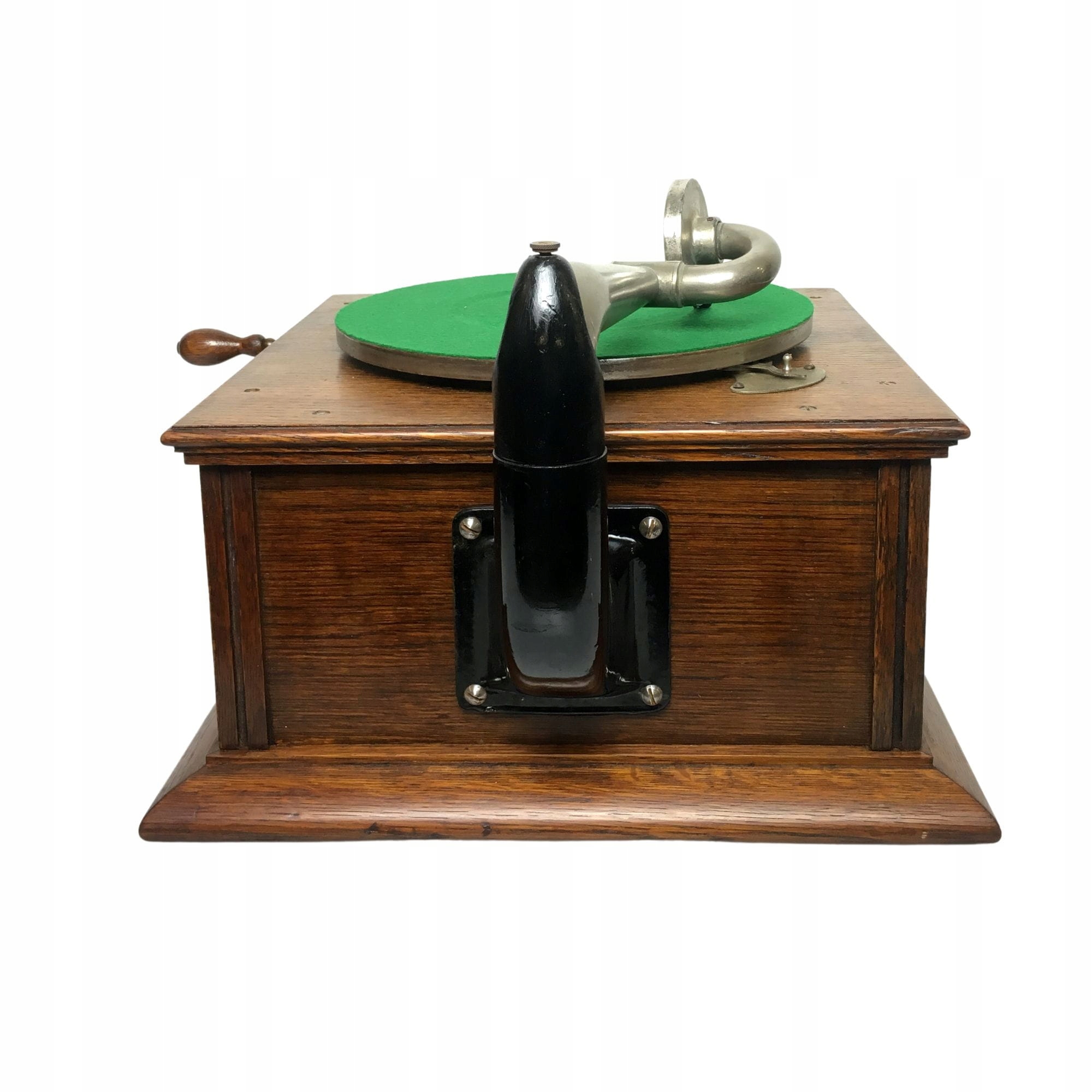 Поворотный стол работает на кривошителе . Он имеет механический привод - разбрызгиваемый пружинный кривошип и не требует подключения к источнику питания. Играет Shellacs со скоростью 78 об / мин.