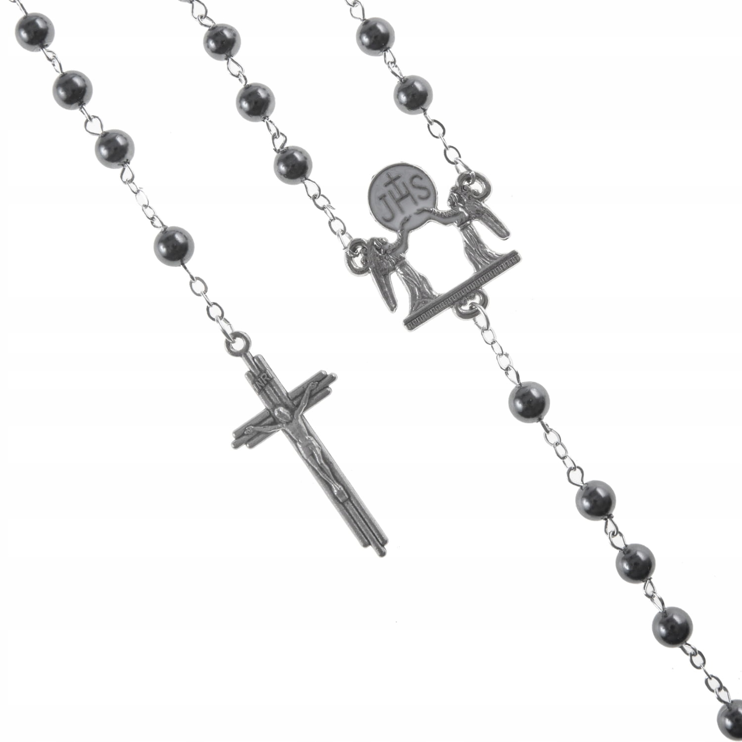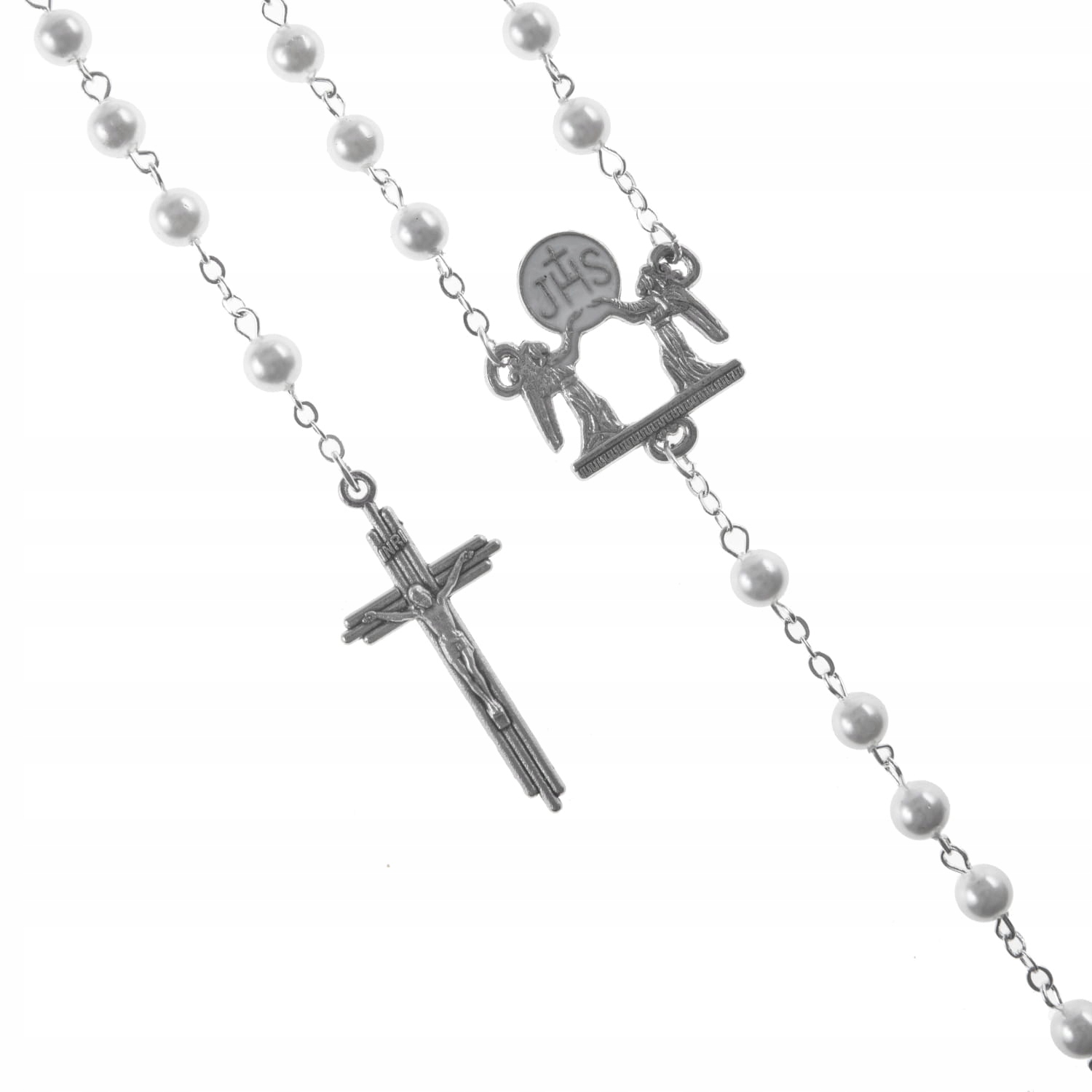 Элегантный набор, состоящий из двух четок и декоративно-декоративной упаковки. Круглые бусины из жемчуга соединены прочной булавкой. Соединитель включает в себя Хост, который является одним из важнейших евхаристических символов, обозначающих Тело Христово. Отдельные десятки были разделены перекрывающимися обручальными кольцами. Обручальные кольца символизируют любовь, вечность и нерасторжимость брака. Их круглая форма – метафора бесконечной любви.