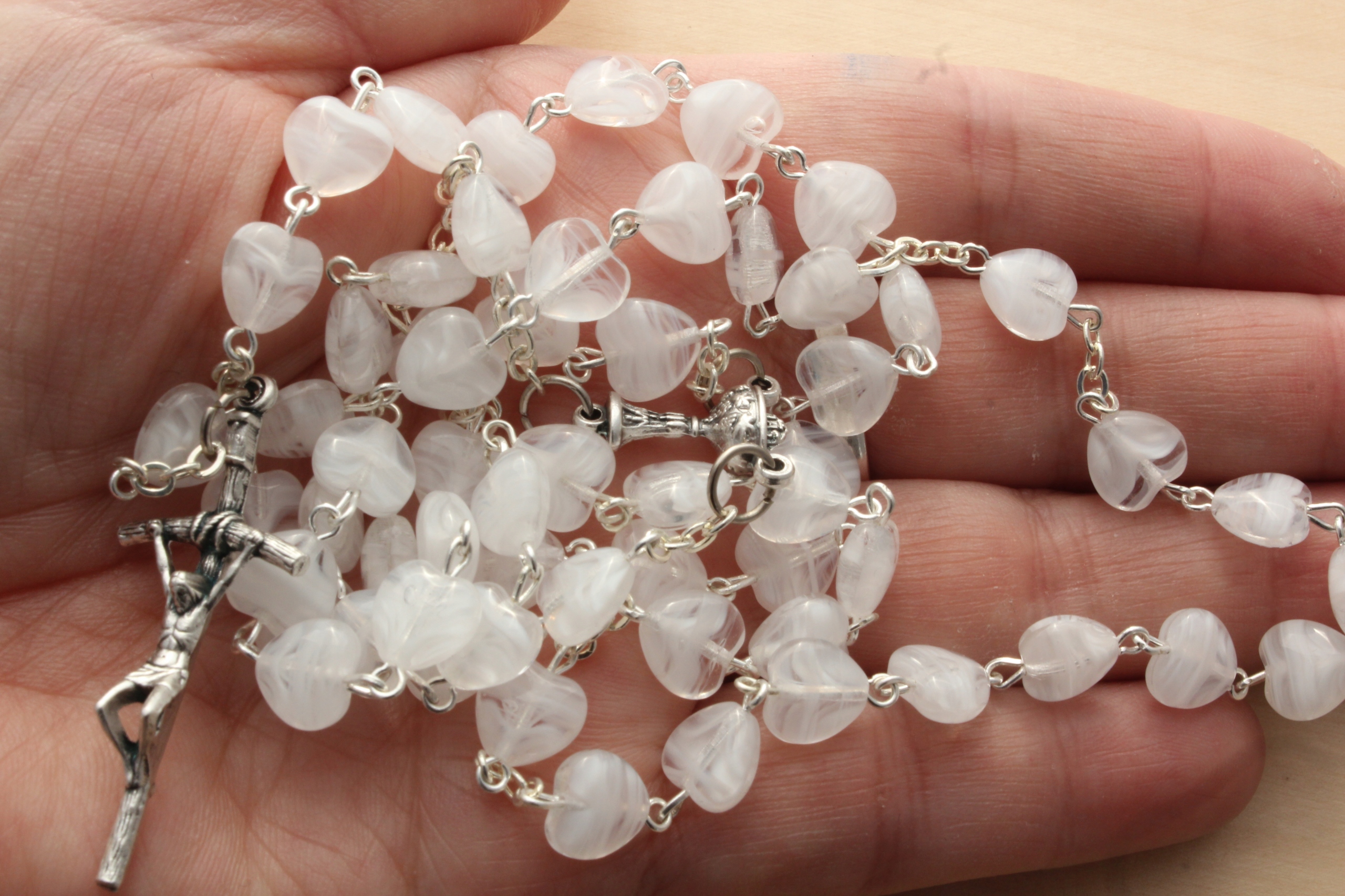 Красивые четки - сердечки - белые, затемненные