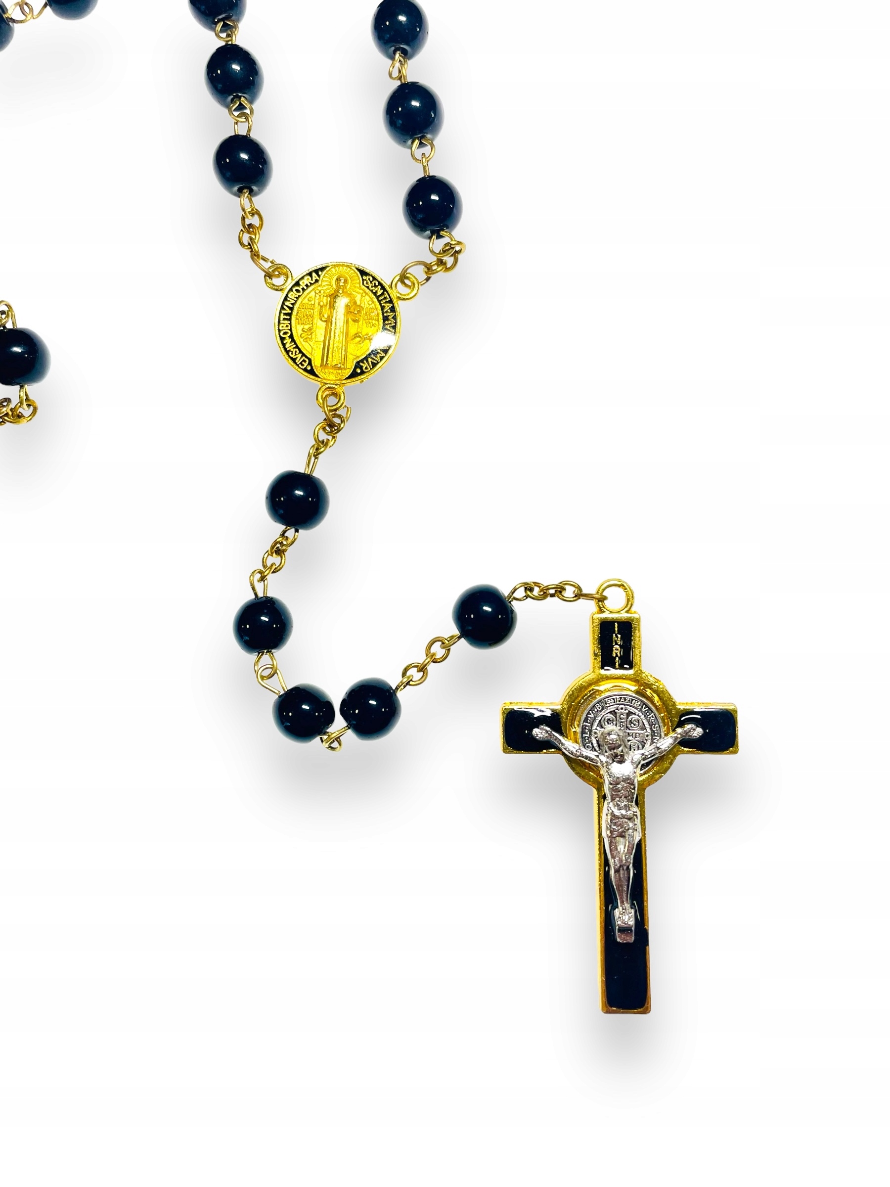 Вервиця з хрестом св. Бенедикта - чорне ВЕЛИКЕ золото