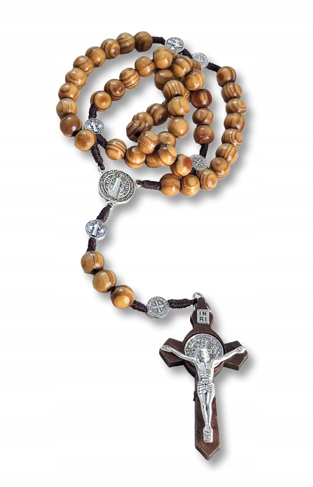 Четки с медальоном и крестом Святого Бенедикта. Прочные, легкие, деревянные и в то же время очень впечатляющие четки с таинствами чудотворного креста и медальона Святого Бенедикта.