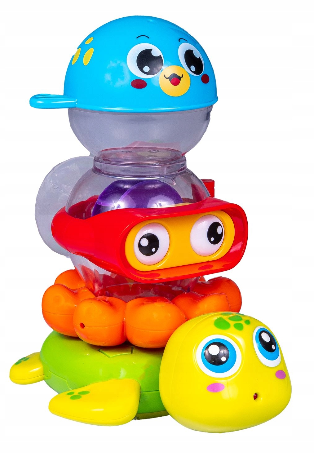 Животные, расположенные друг на друге, образуют пирамиду, которую малыш может обливать водой или играть с отдельными животными.
